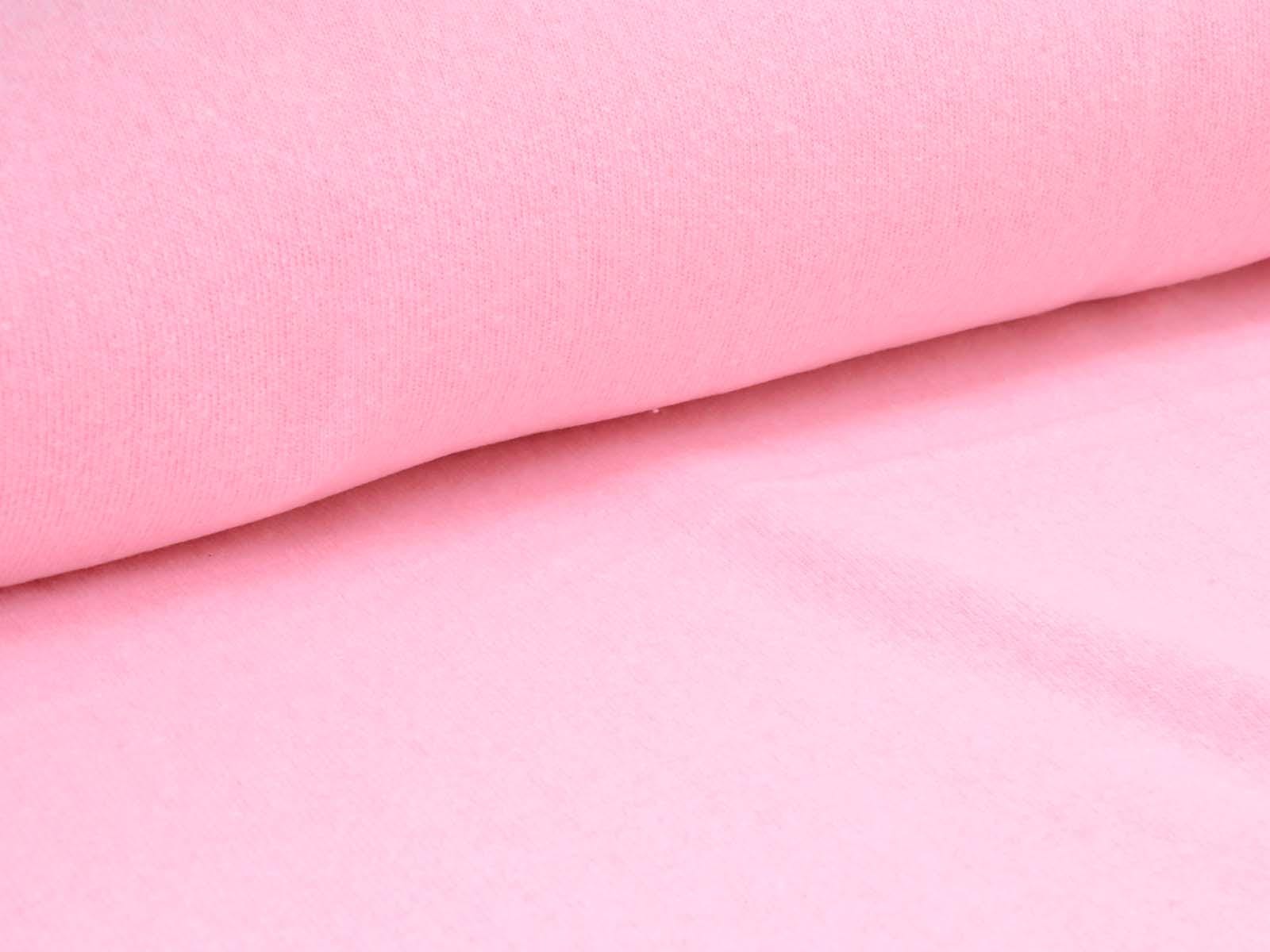 High-quality Gillo knit fabric in pink from Hilco. This melange knit with a high cotton content is beautifully soft and has a lovely drape. It's perfect for sewing sweaters, warm dresses, and cardigans.