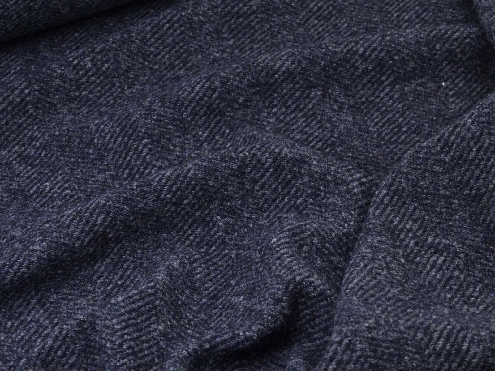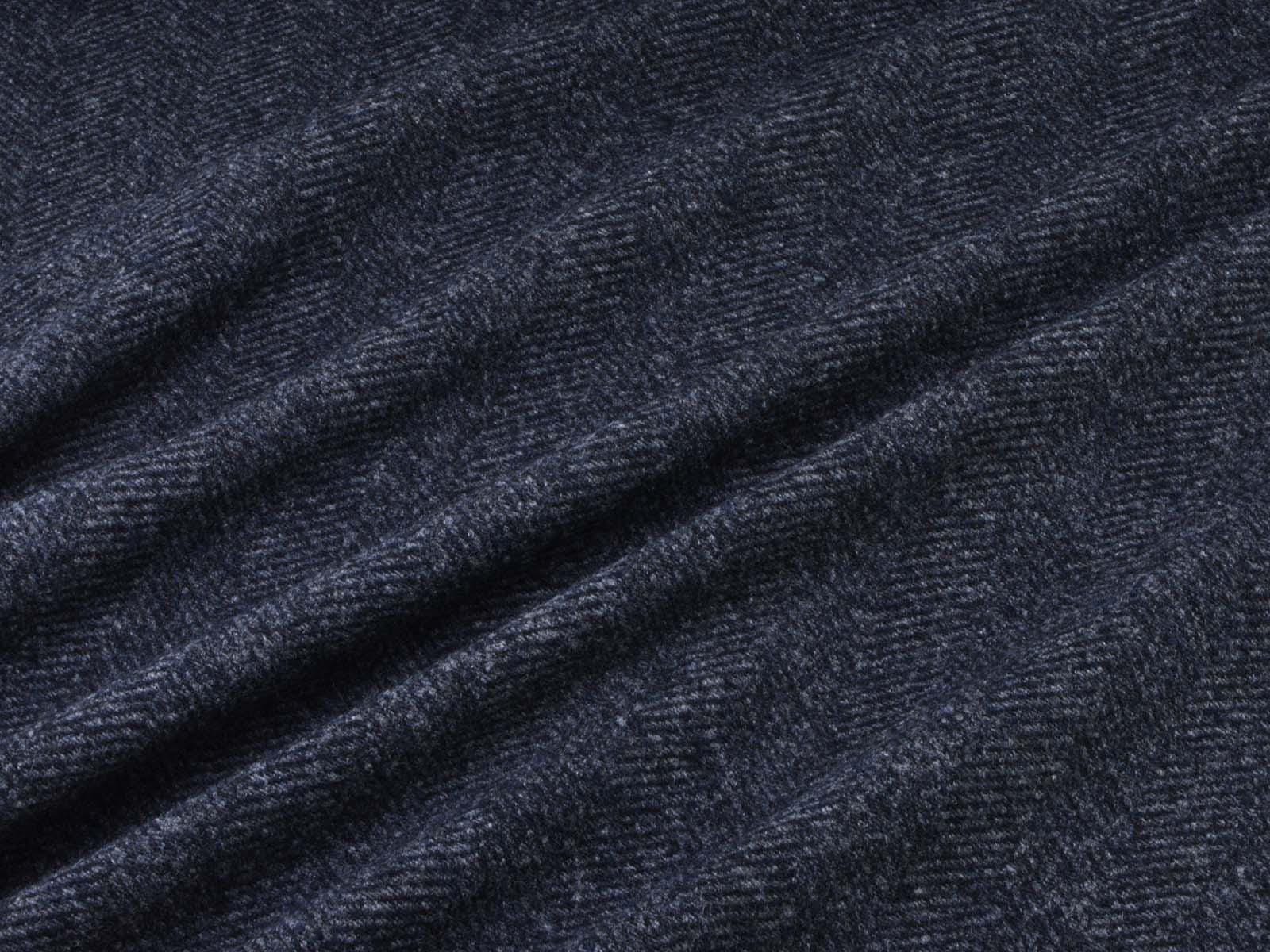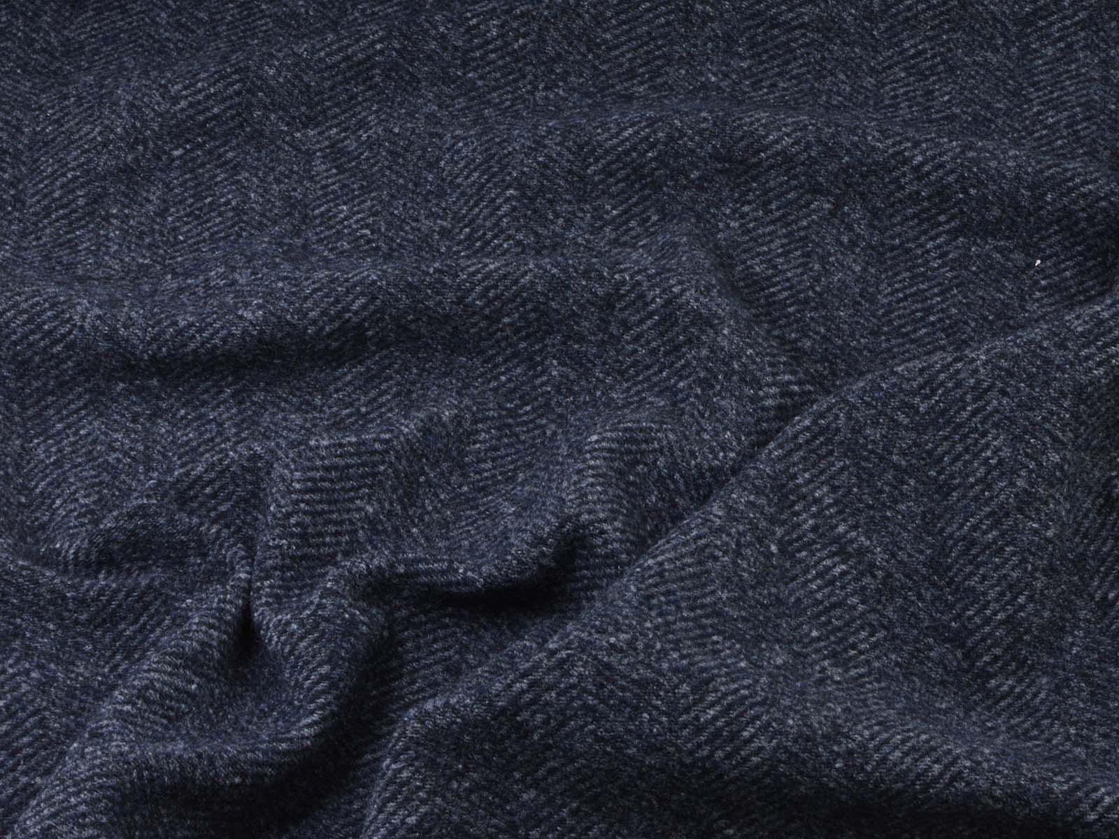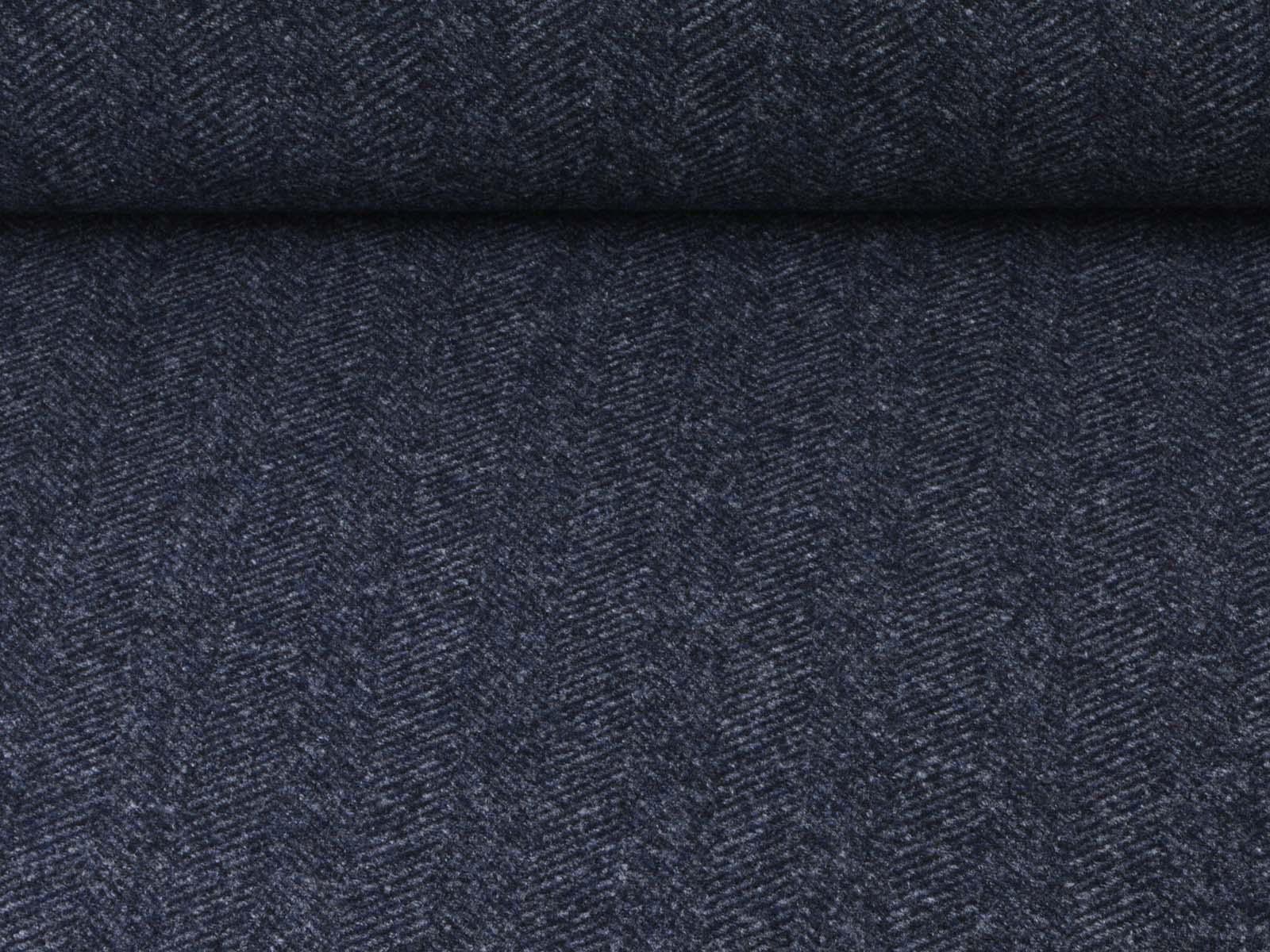 Knit fabric made of pure new wool in mottled dark blue. The fabric is soft, medium-weight, and slightly stretchy. It's suitable for sewing cardigans, dresses, skirts, and much more.
