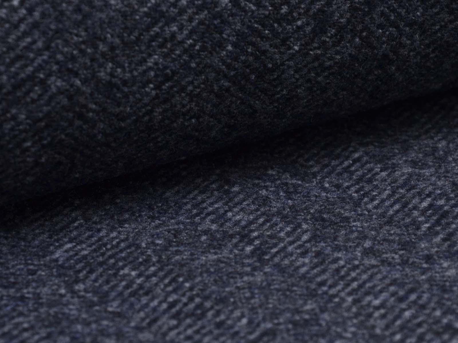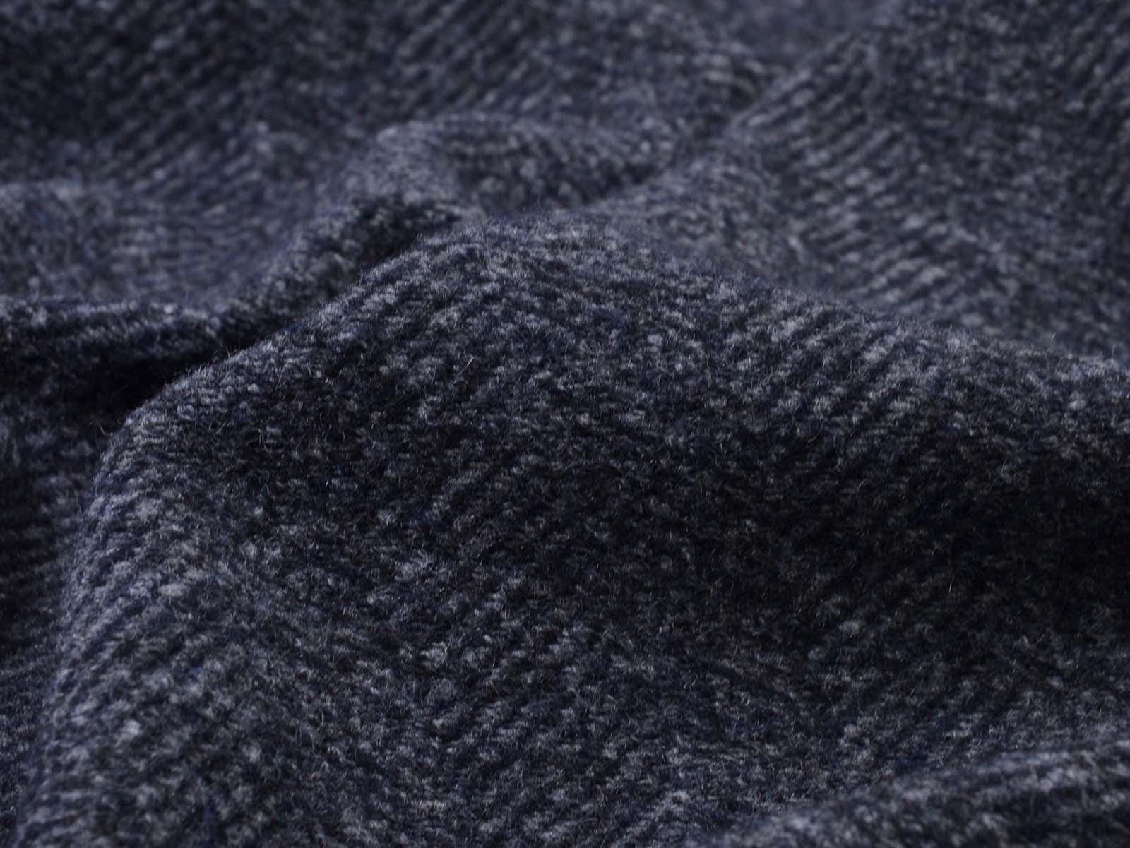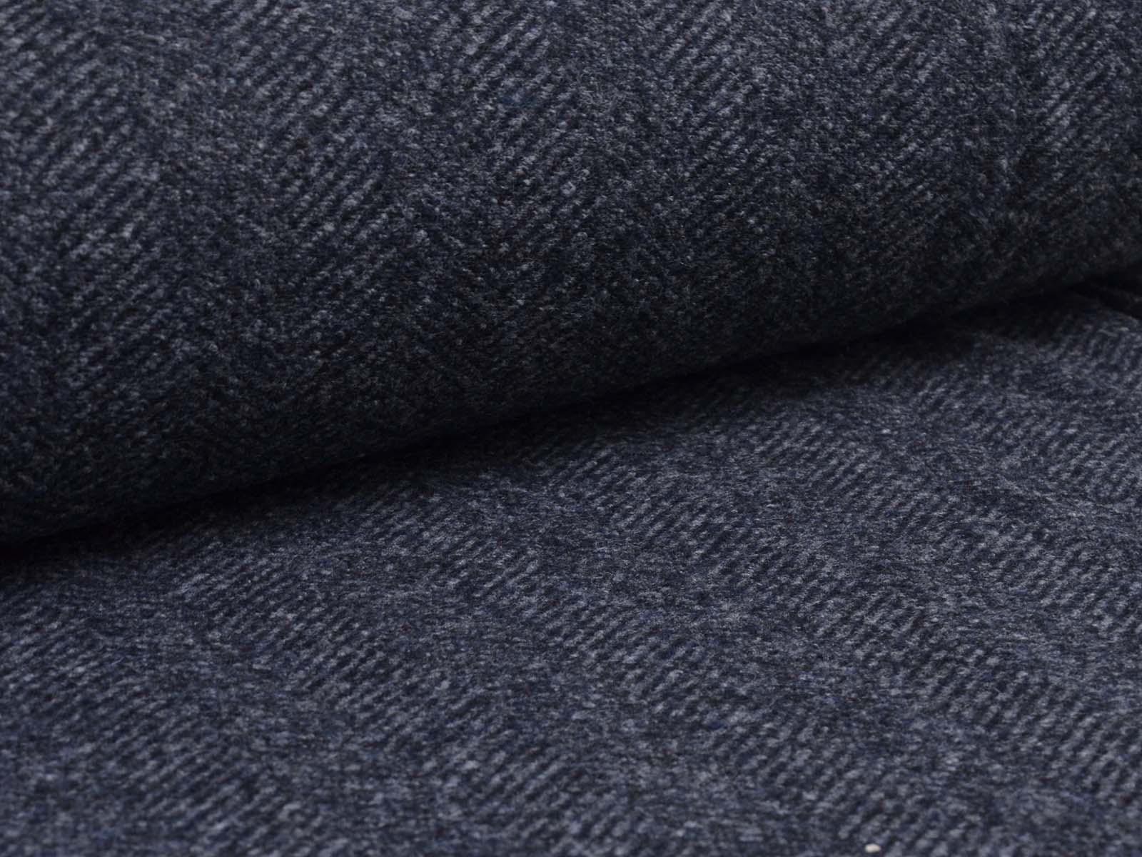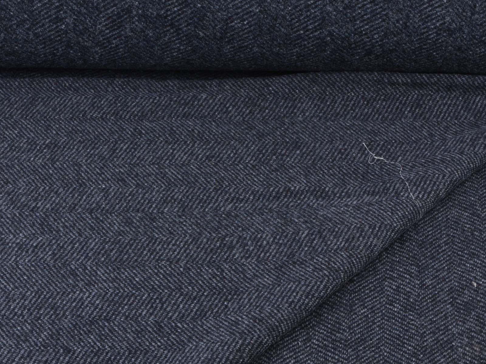 Knit fabric made of pure new wool in mottled dark blue. The fabric is soft, medium-weight, and slightly stretchy. It's suitable for sewing cardigans, dresses, skirts, and much more.
