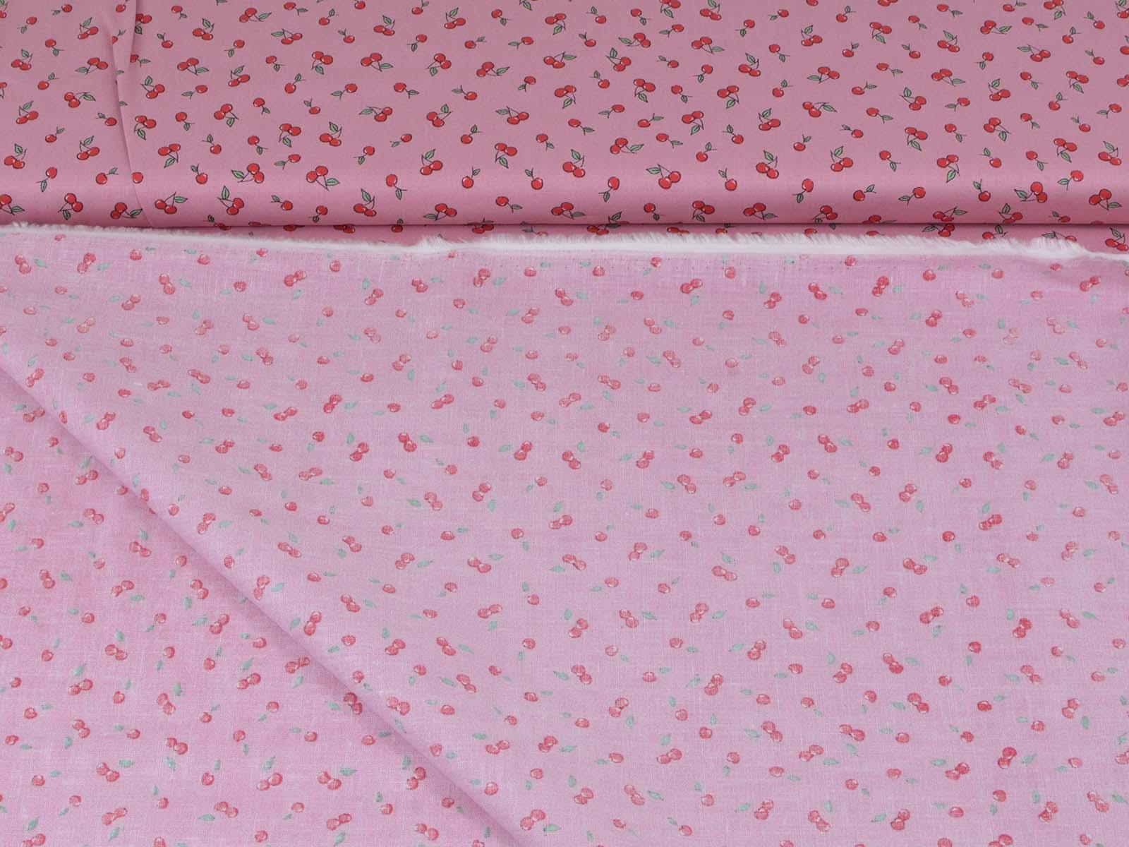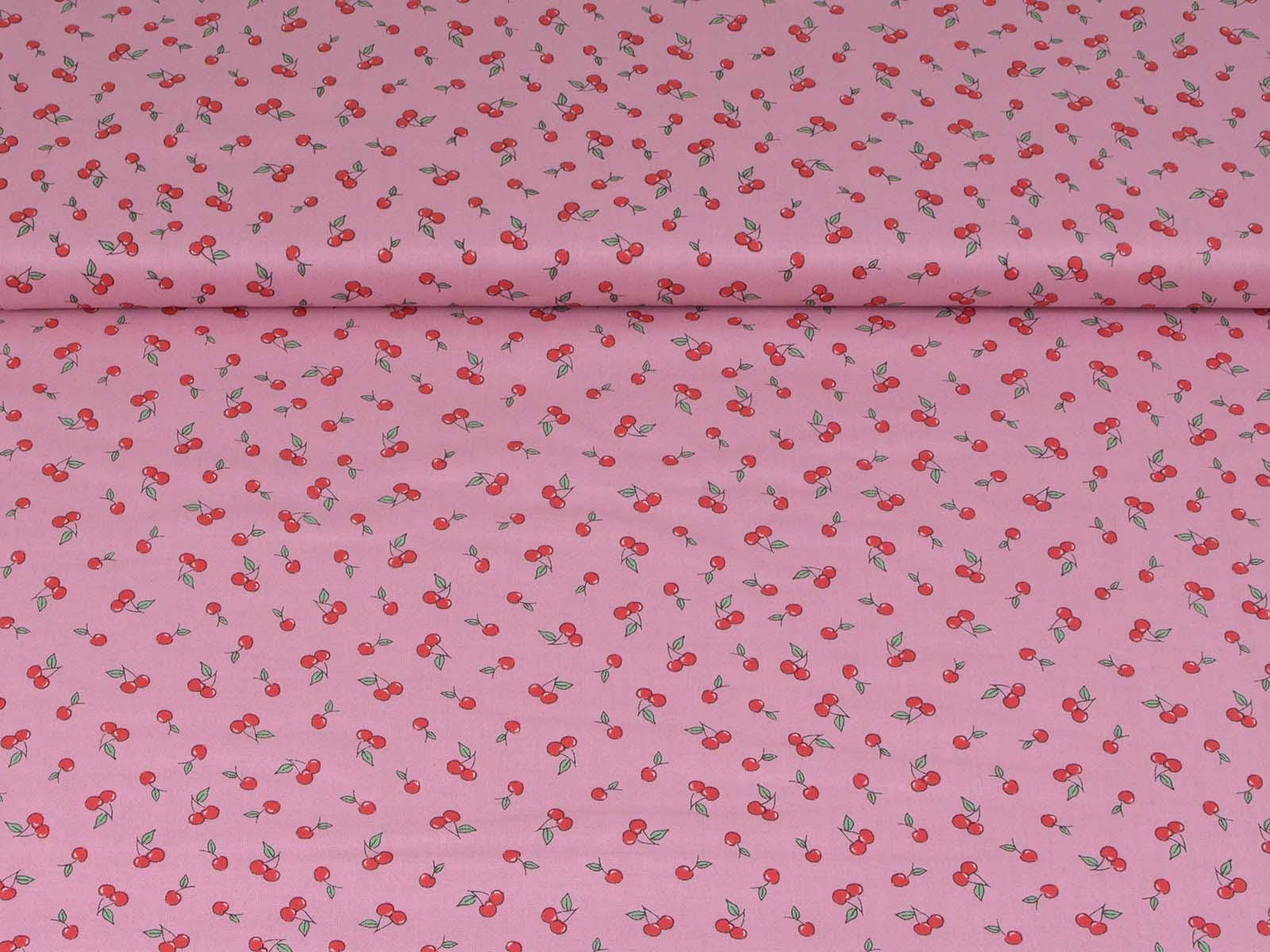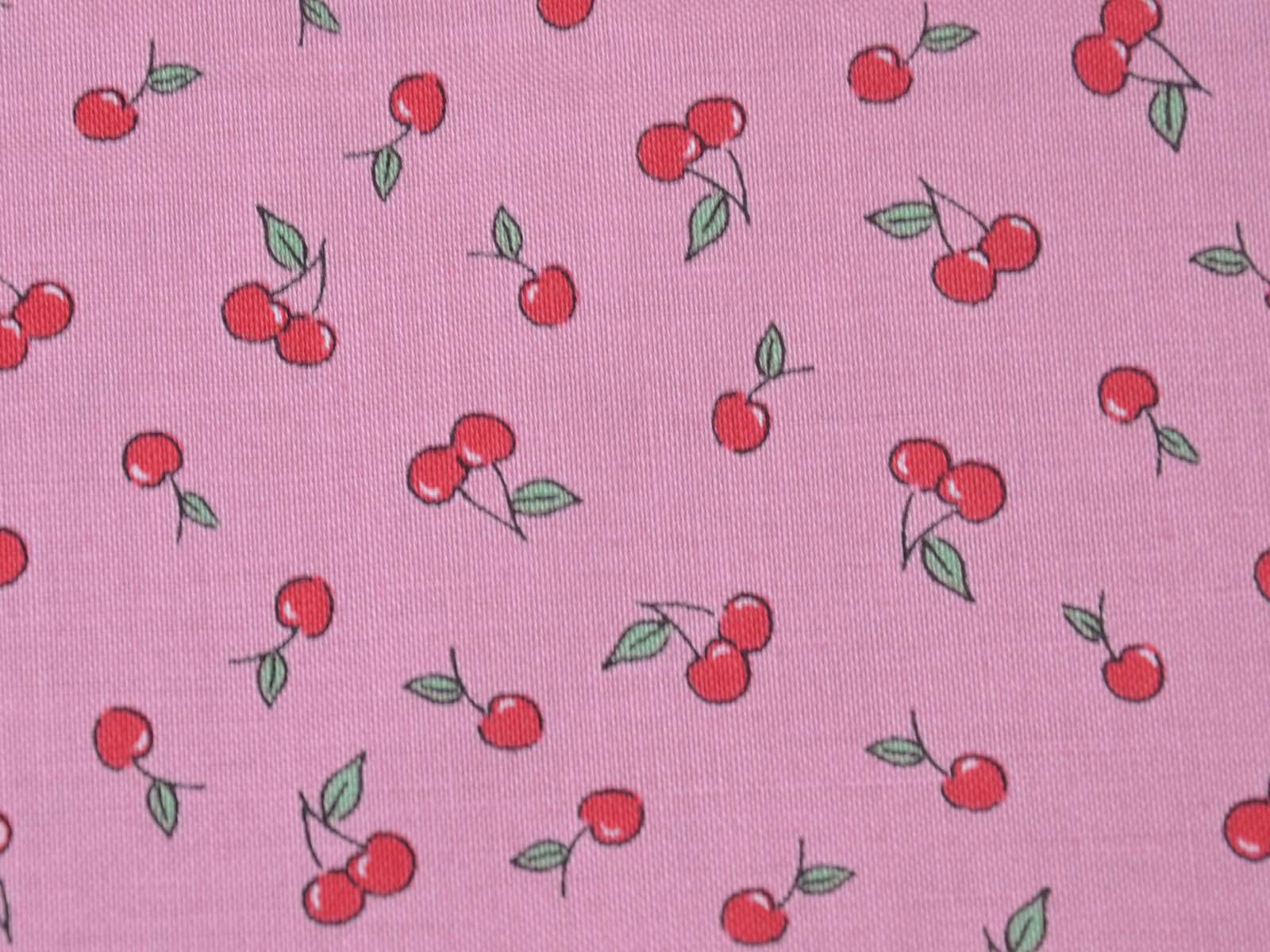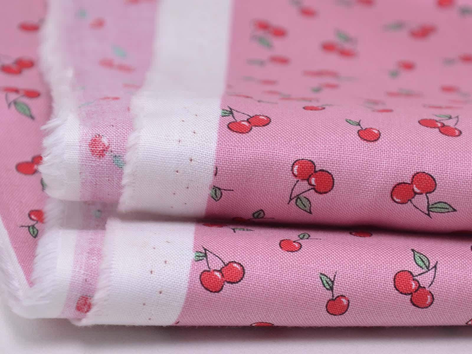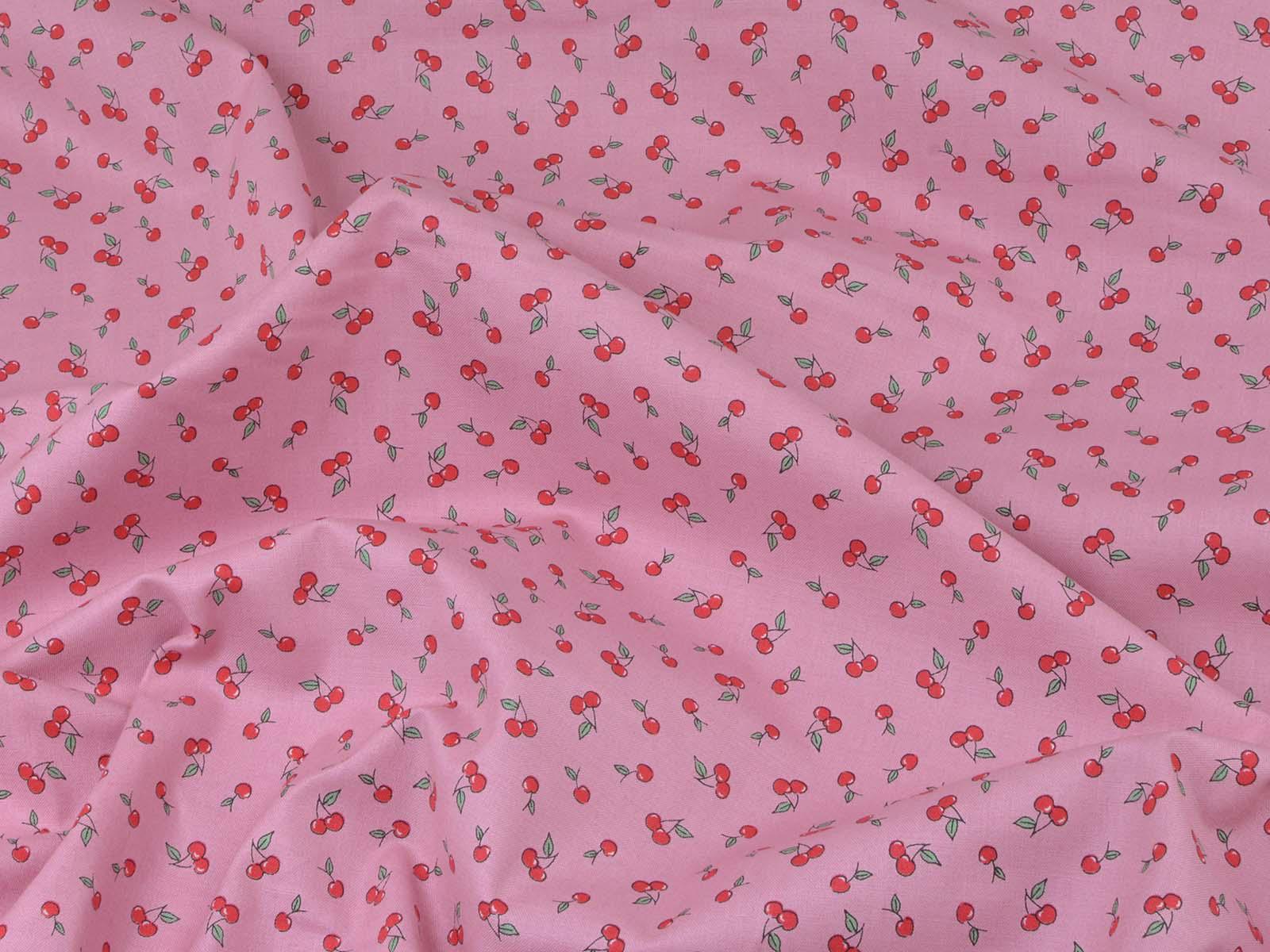 High-quality printed cotton fabric. The pink fabric features small red cherries. This cotton fabric from Makower is sturdy and therefore ideal for sewing cushions, bags, patchwork projects, tablecloths, blouses, and much more.