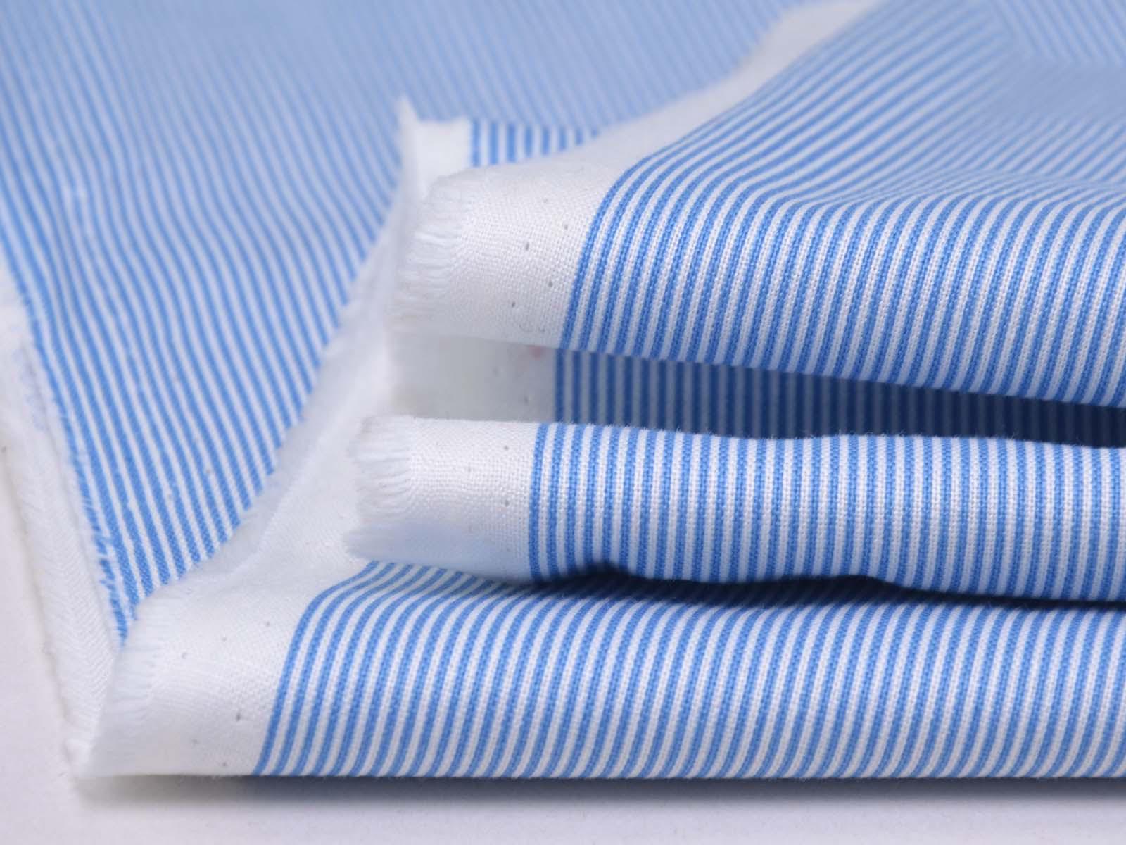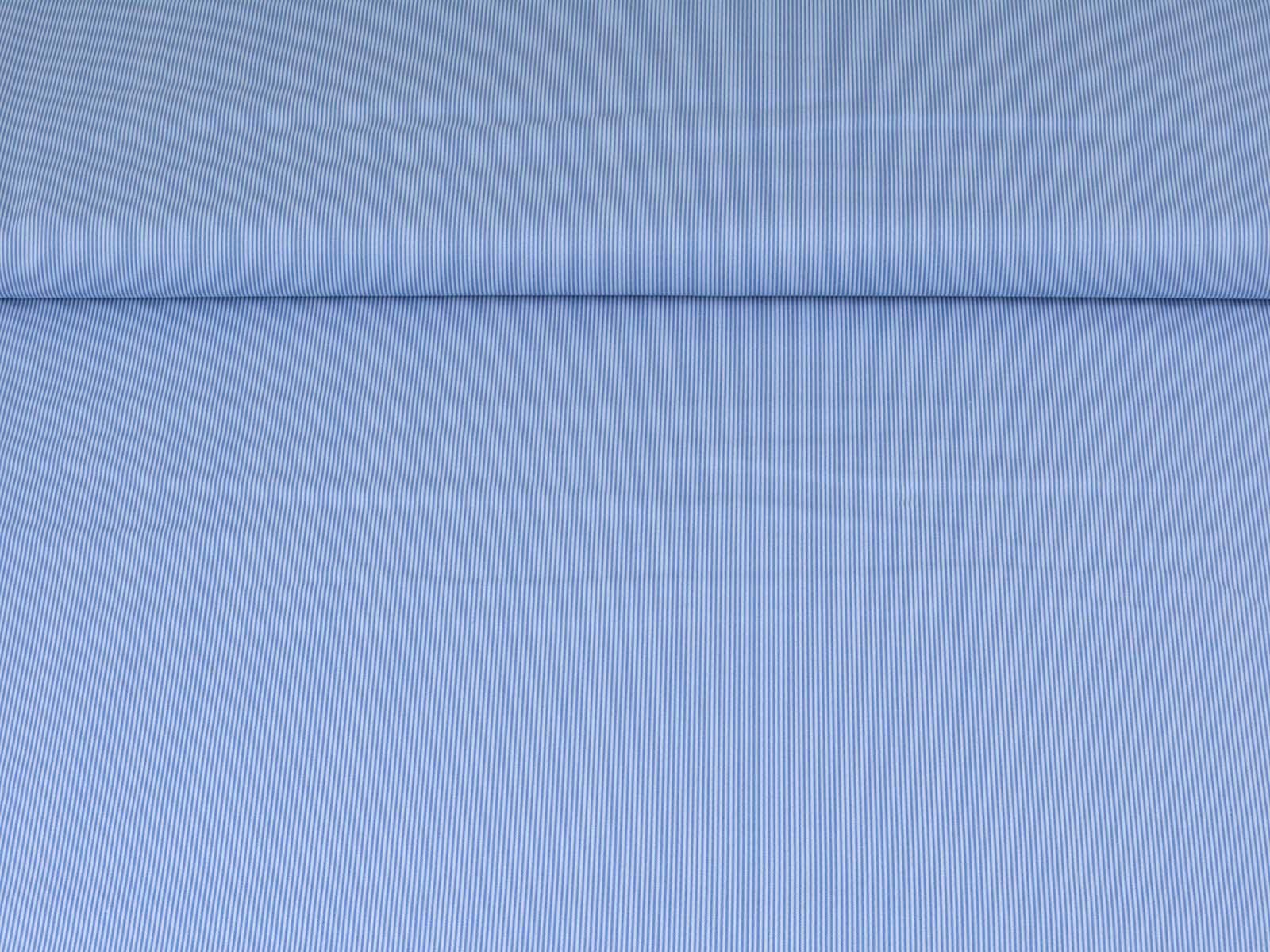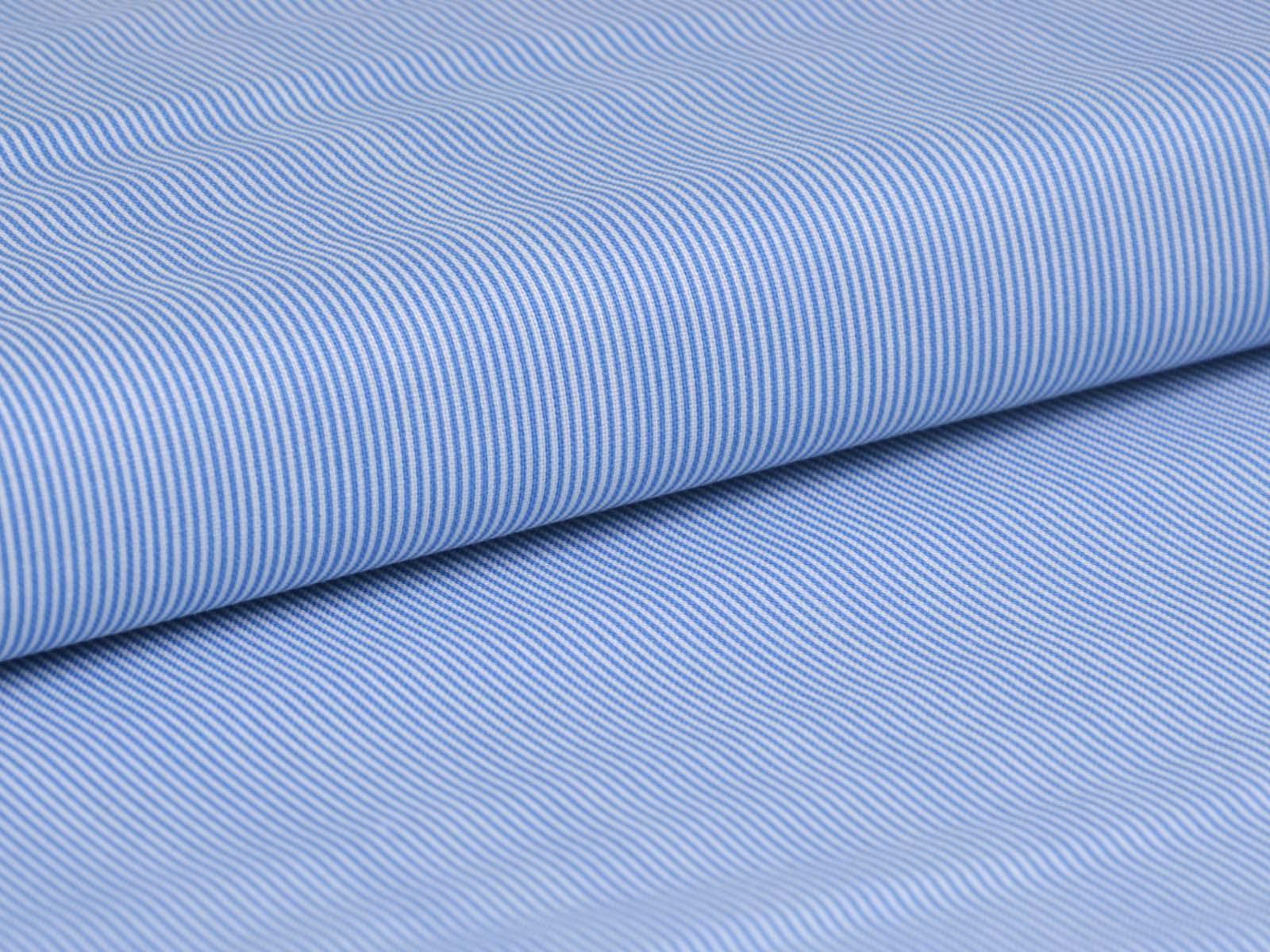 High-quality printed cotton fabric. The fabric is blue and white striped. Each stripe is approximately 1 mm wide. This cotton fabric from Makower is sturdy and therefore ideal for sewing cushions, bags, patchwork projects, tablecloths, blouses, and much more.