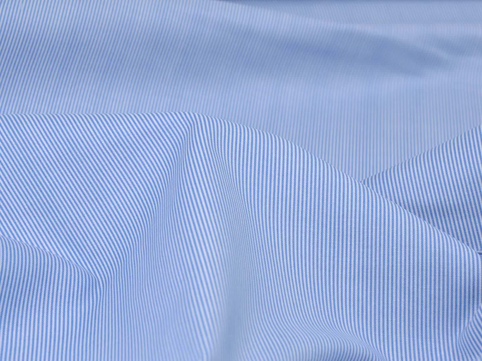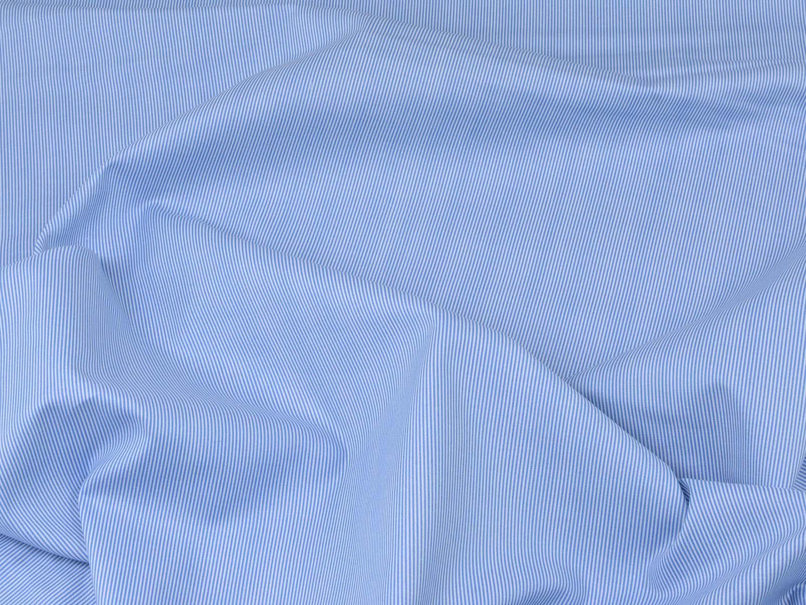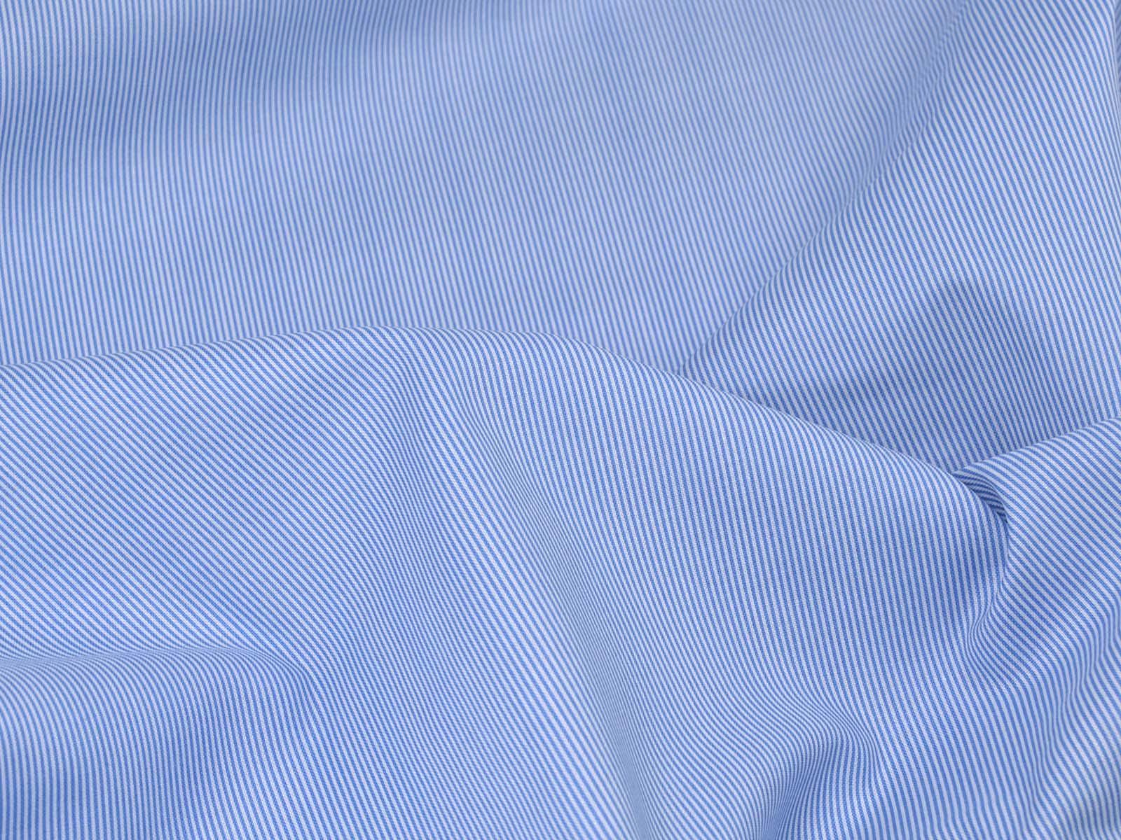 High-quality printed cotton fabric. The fabric is blue and white striped. Each stripe is approximately 1 mm wide. This cotton fabric from Makower is sturdy and therefore ideal for sewing cushions, bags, patchwork projects, tablecloths, blouses, and much more.