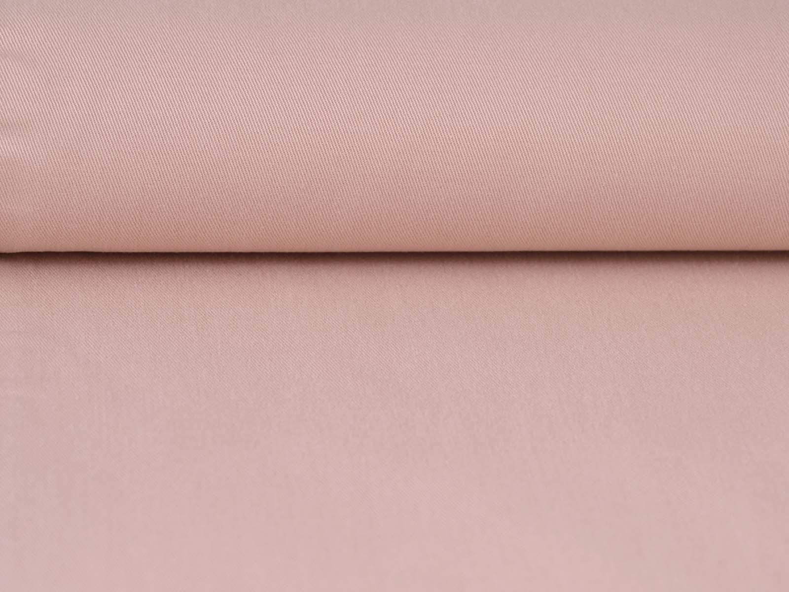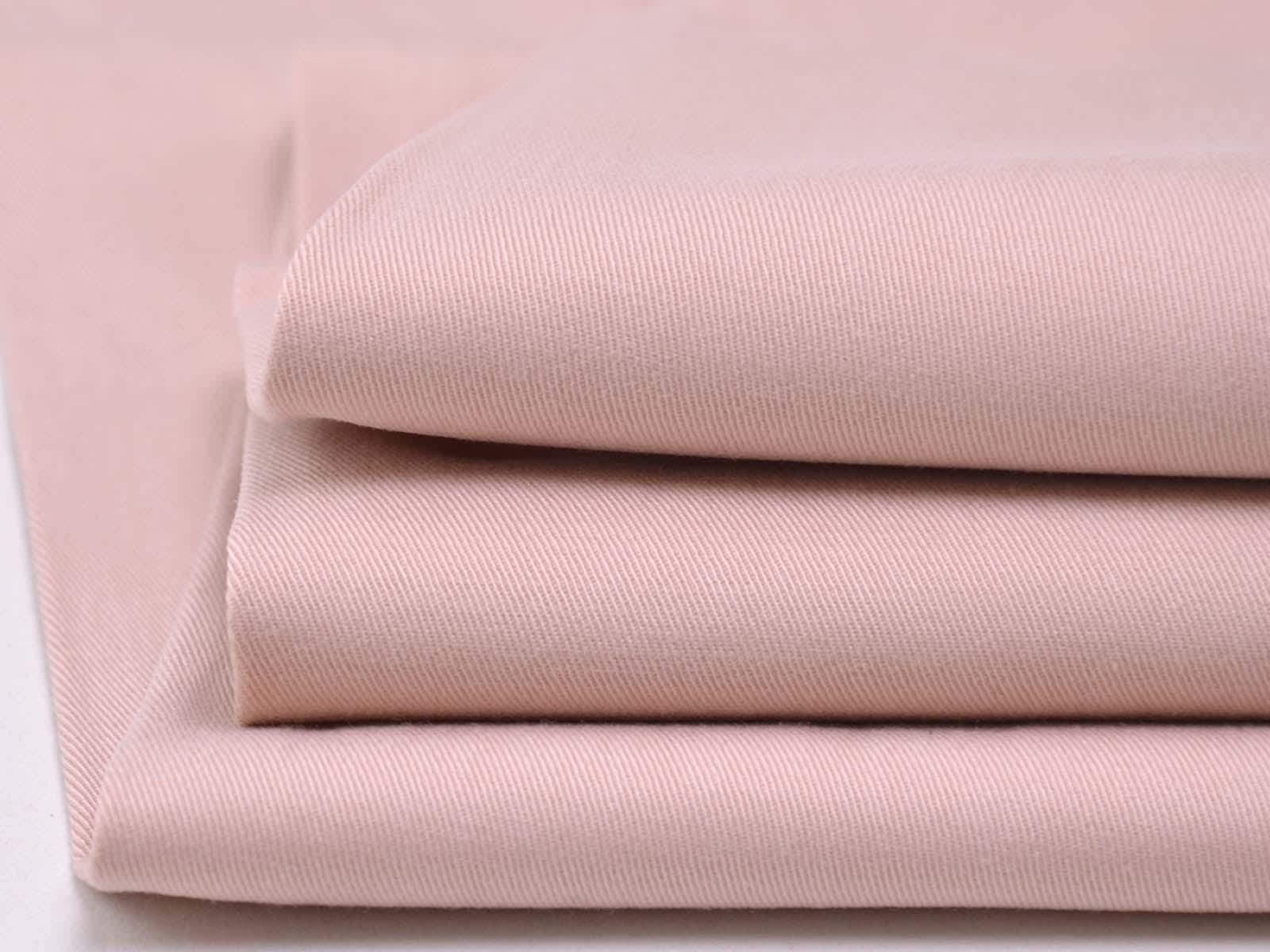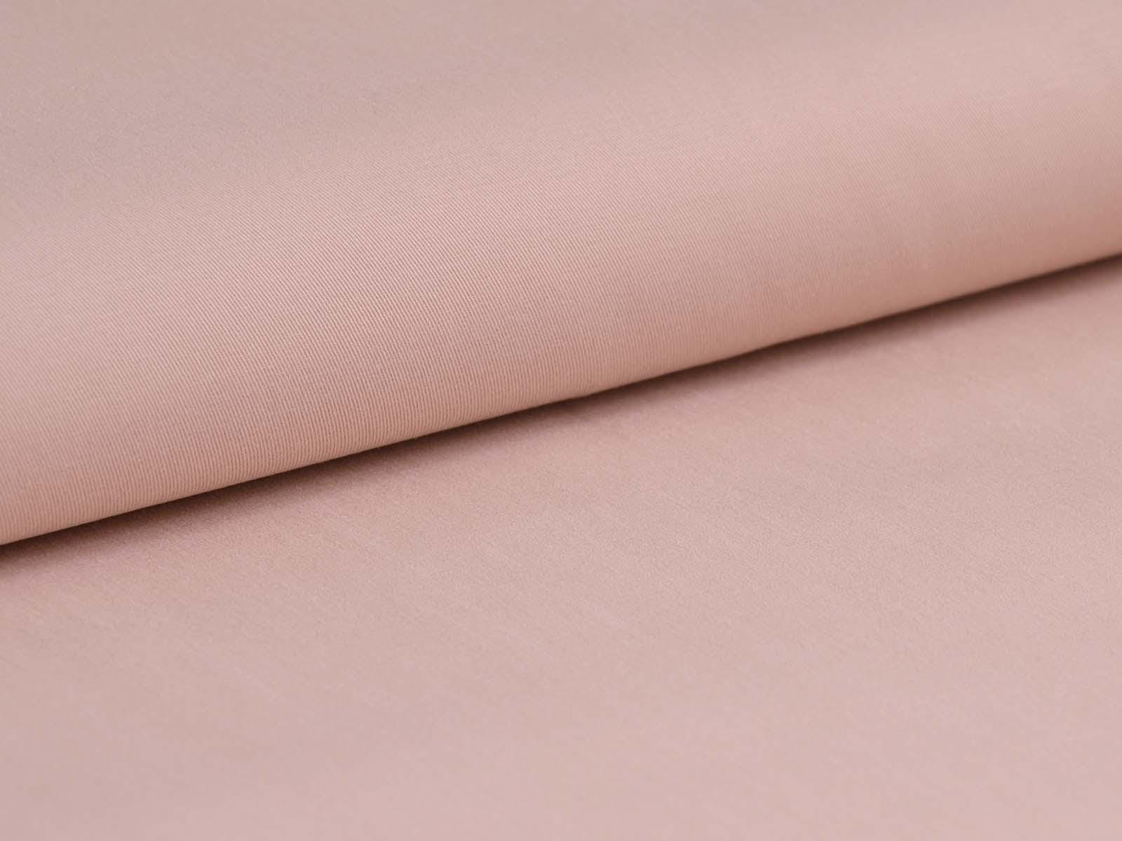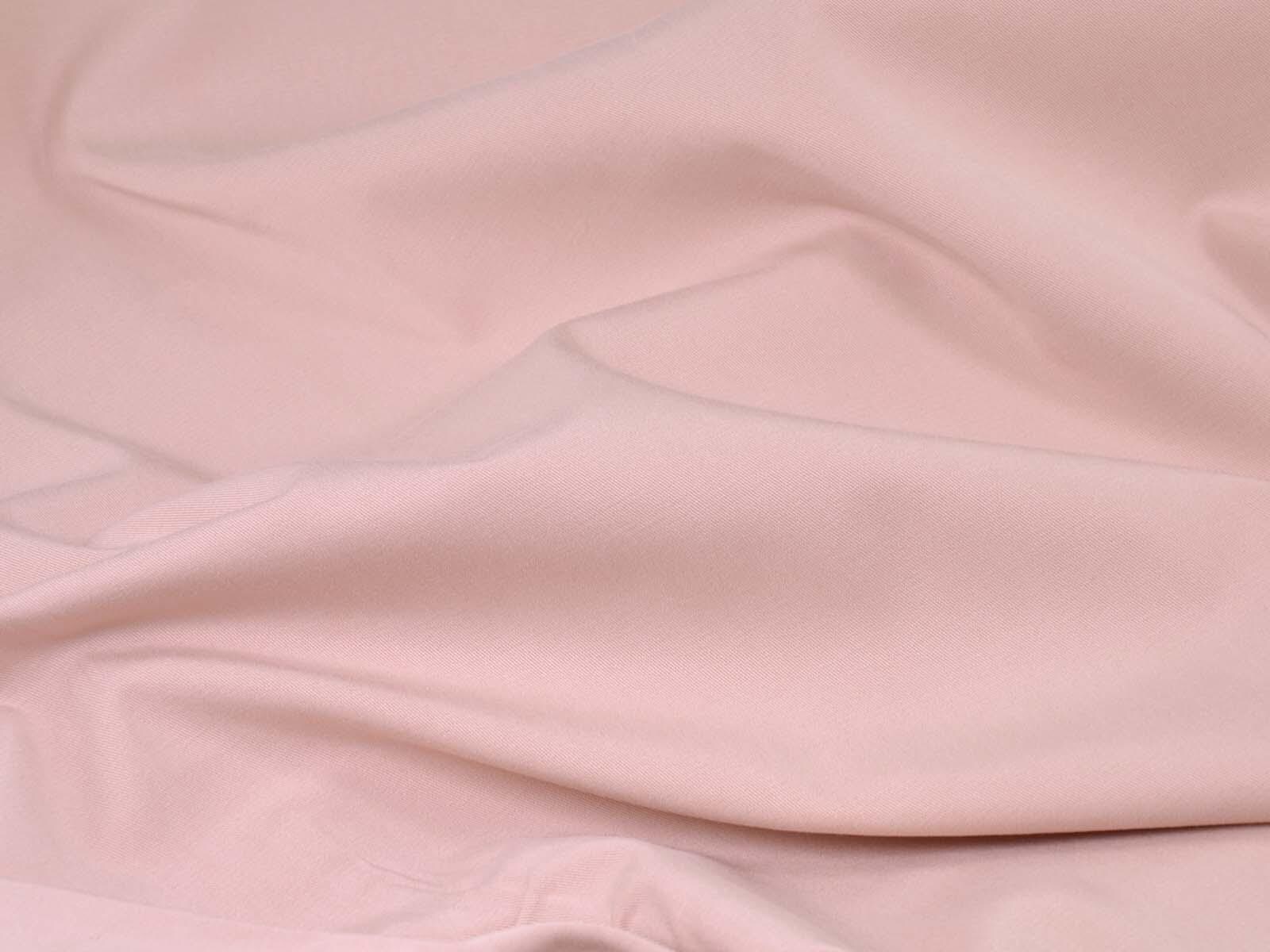 High-quality woven fabric made from lyocell and cotton by Hilco. The fabric is solid pink. It is smooth, thin, and has a subtle sheen. Sew trousers, dresses, skirts, and much more from it.