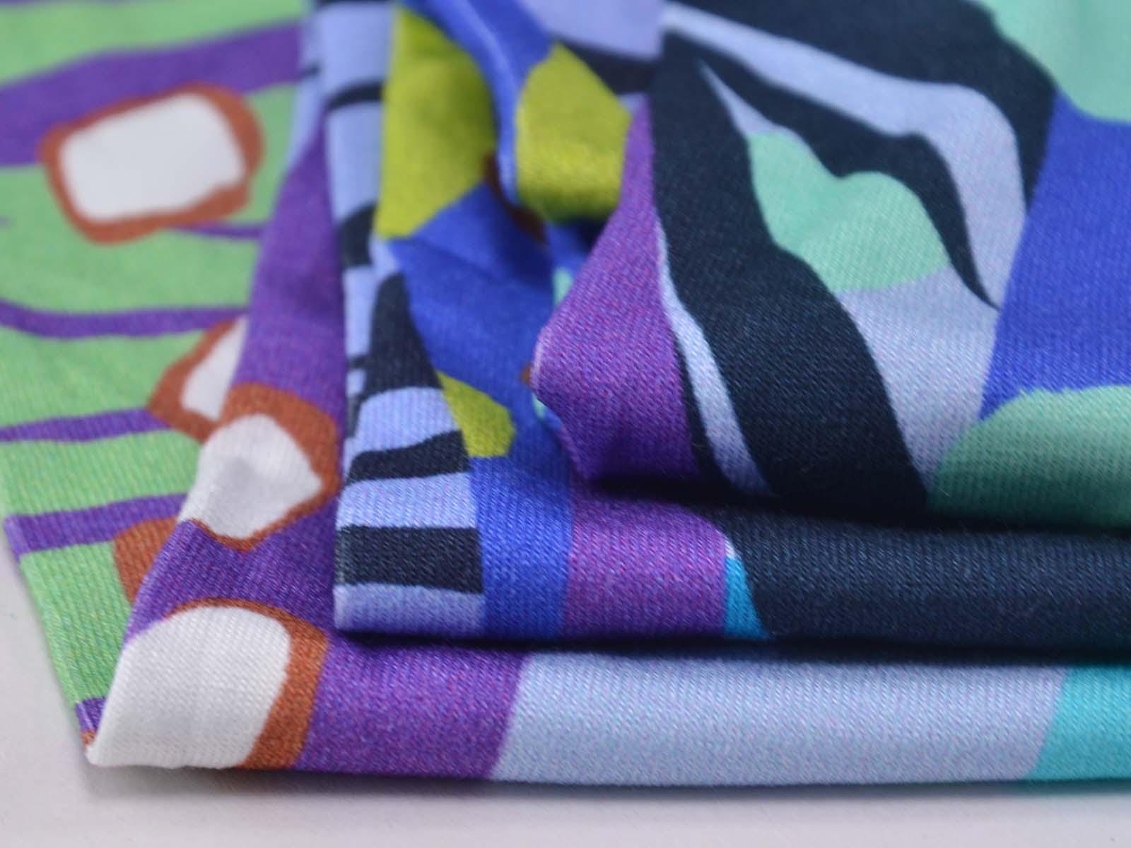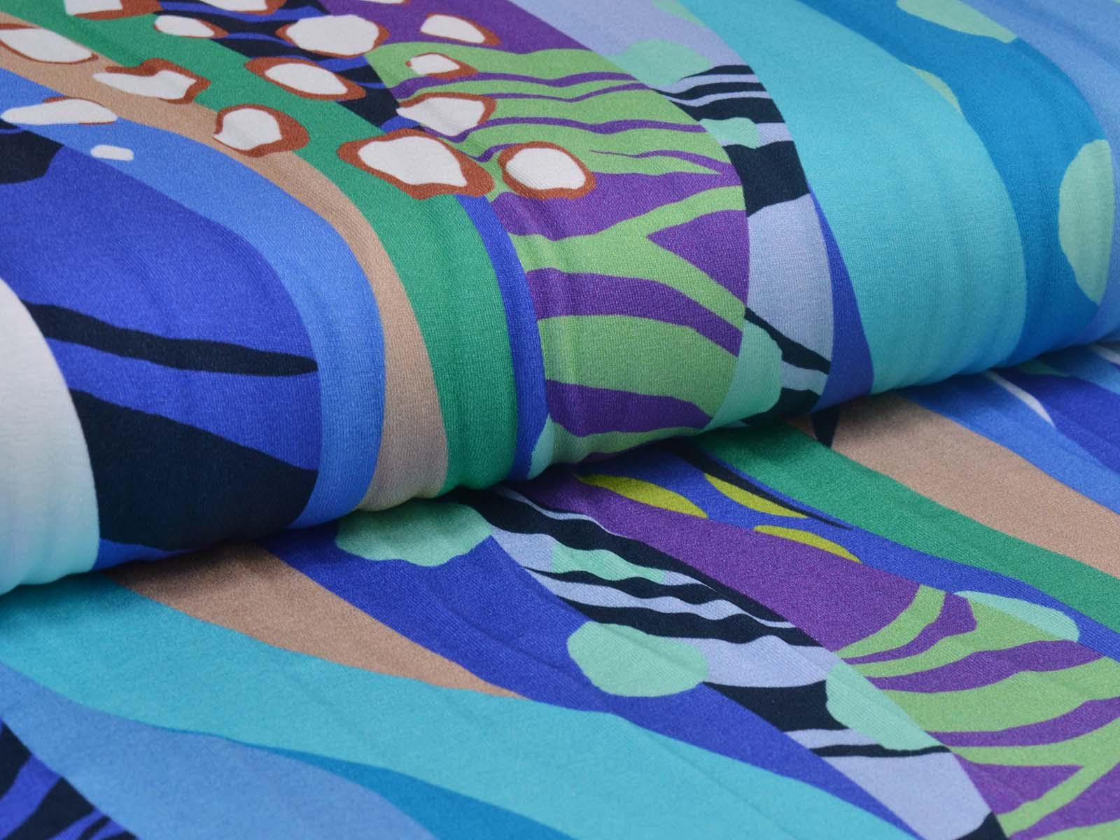 Jersey fabric made from viscose and elastane, produced in Italy. The fabric is thin, yet relatively heavy, and has a beautiful drape. It features stripes and polka dots. Use it to sew T-shirts, dresses, long-sleeved shirts, and much more.