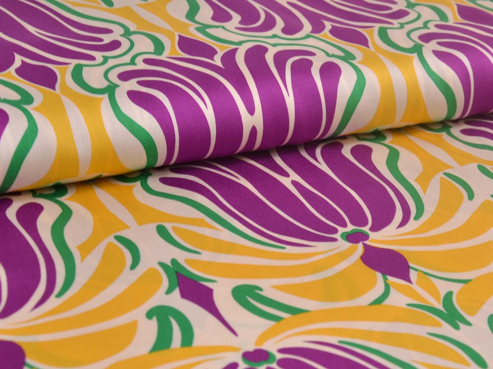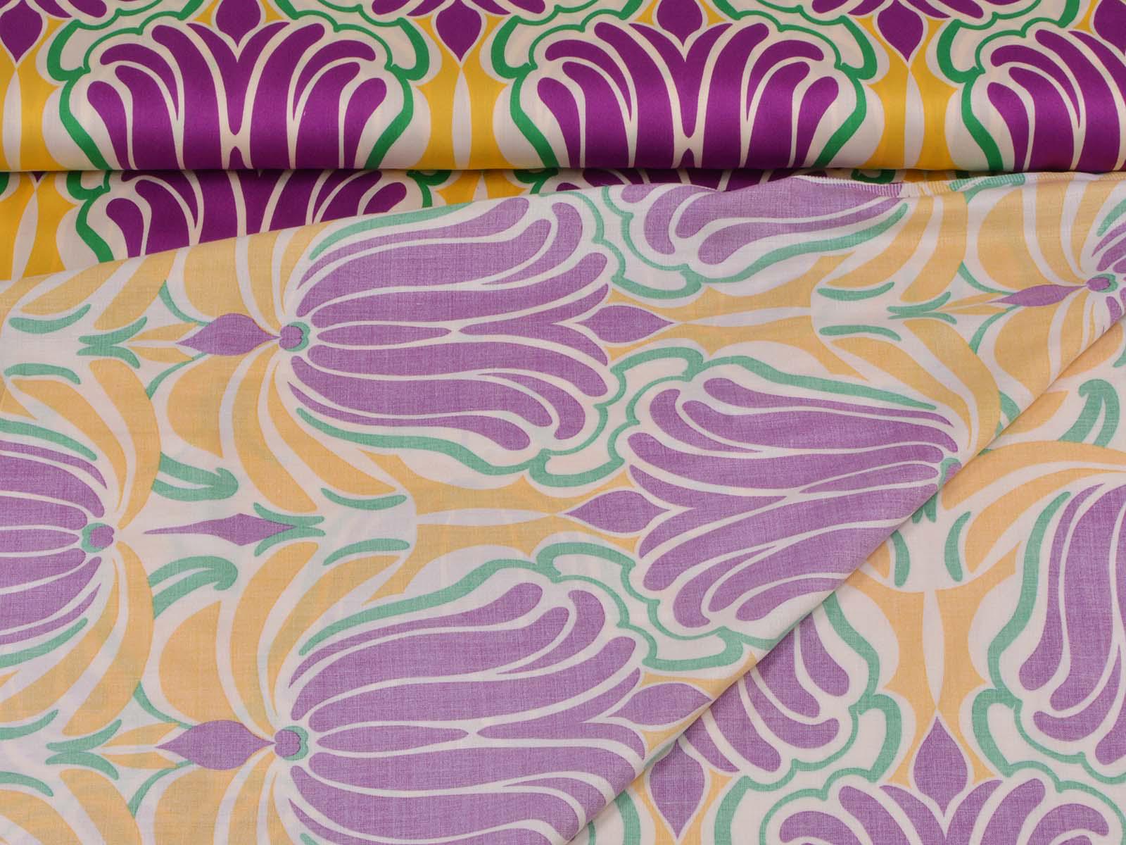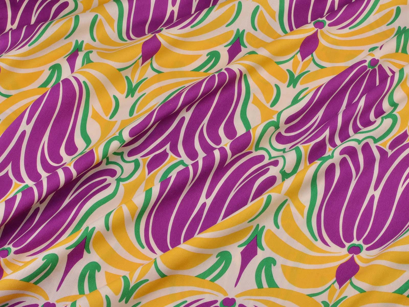 Woven viscose fabric with a large floral pattern. The fabric is made in Italy. The viscose is lightweight, thin, drapes beautifully, and has a subtle sheen. It is perfect for sewing dresses, blouses, summer trousers, skirts, and much more.