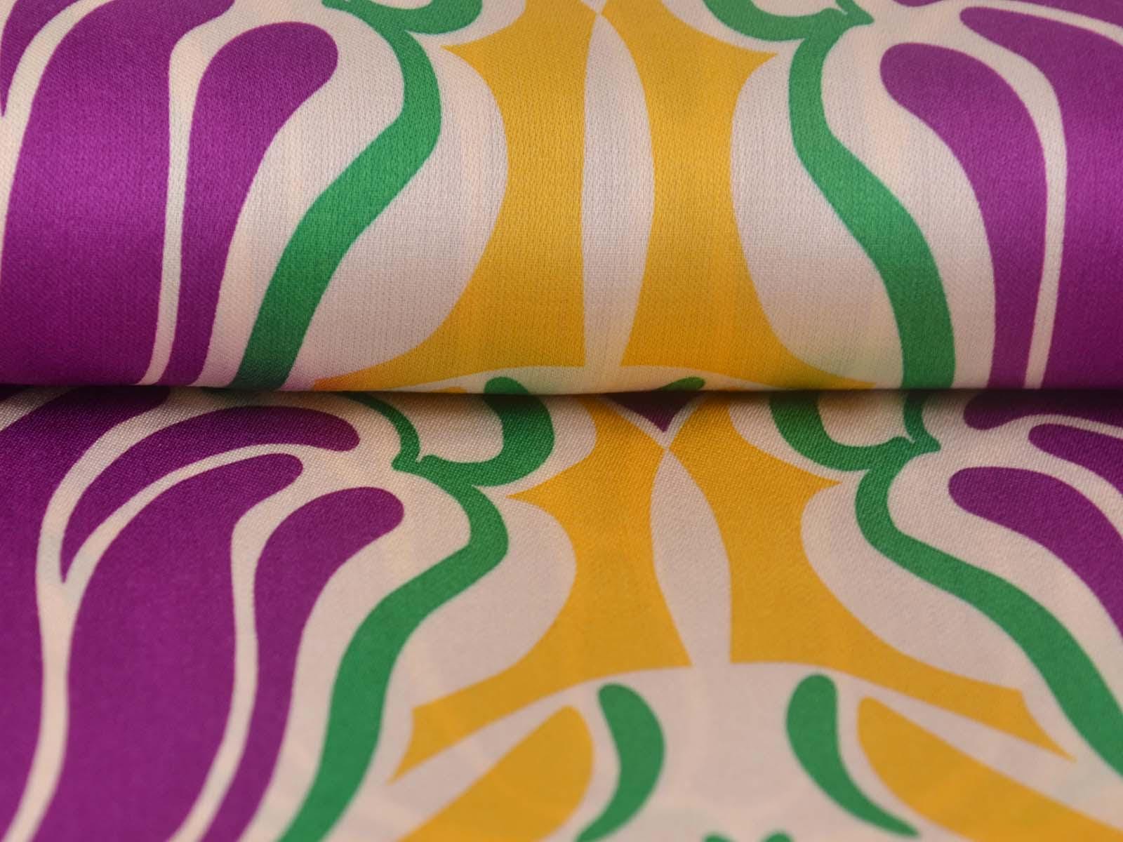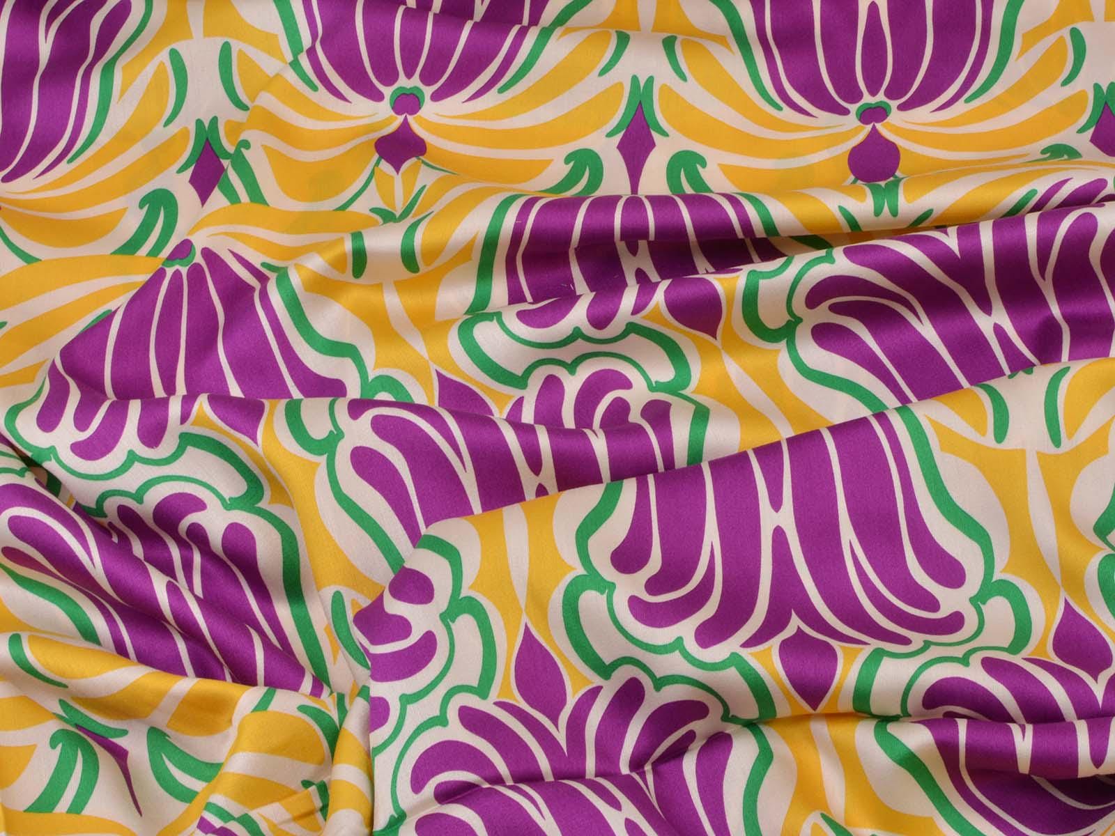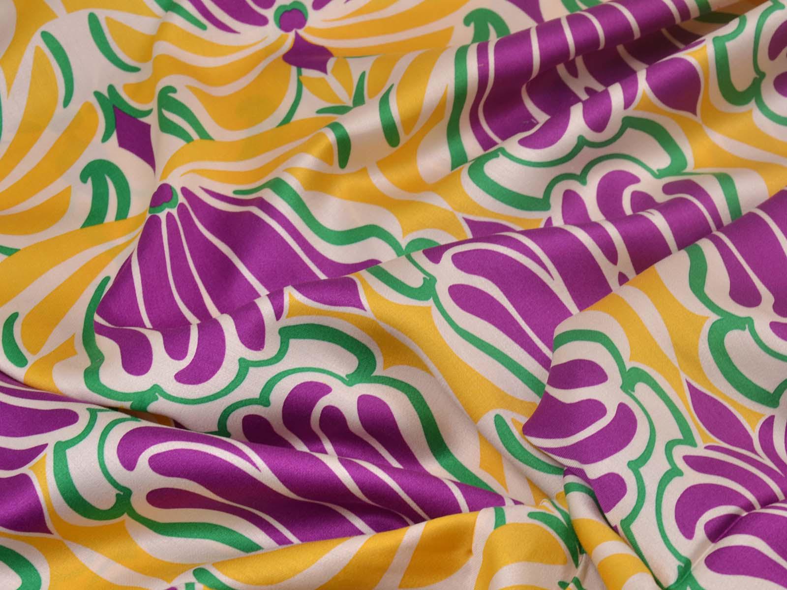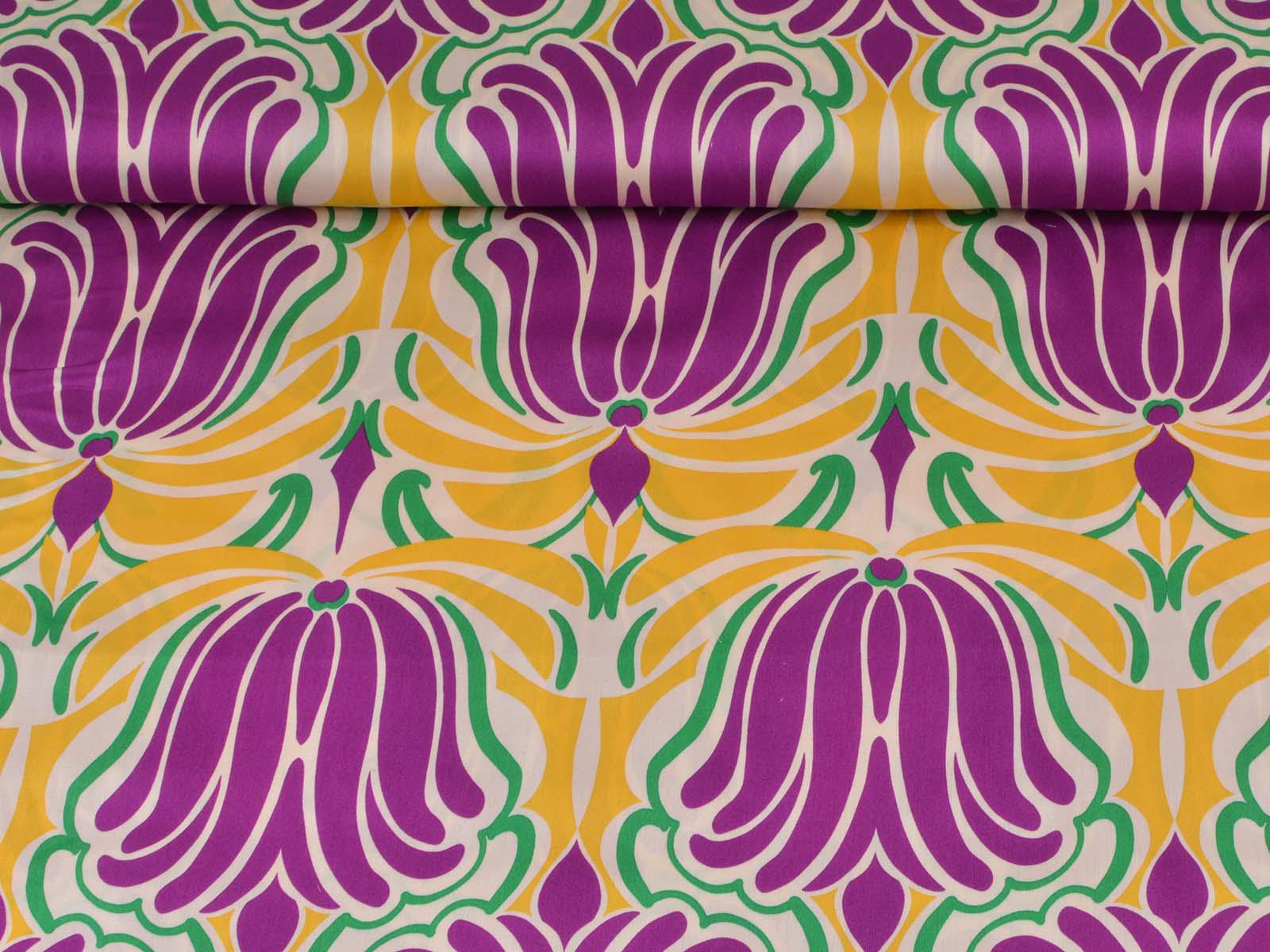 Woven viscose fabric with a large floral pattern. The fabric is made in Italy. The viscose is lightweight, thin, drapes beautifully, and has a subtle sheen. It is perfect for sewing dresses, blouses, summer trousers, skirts, and much more.