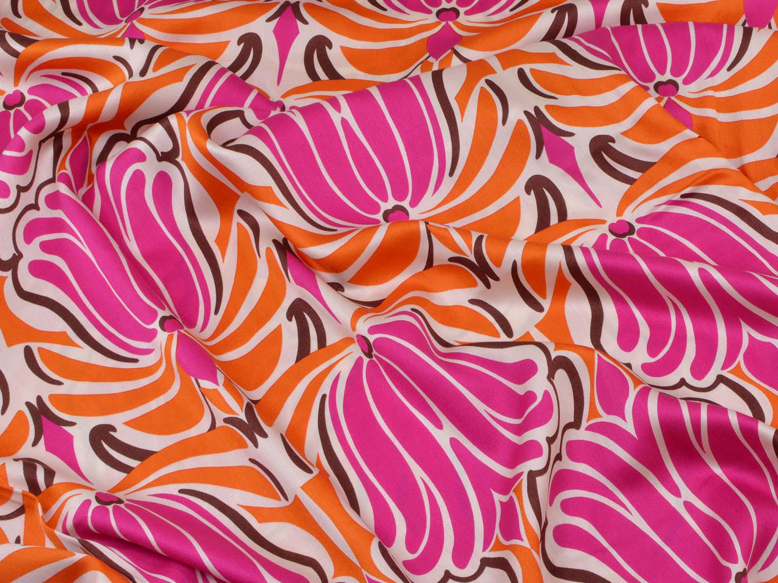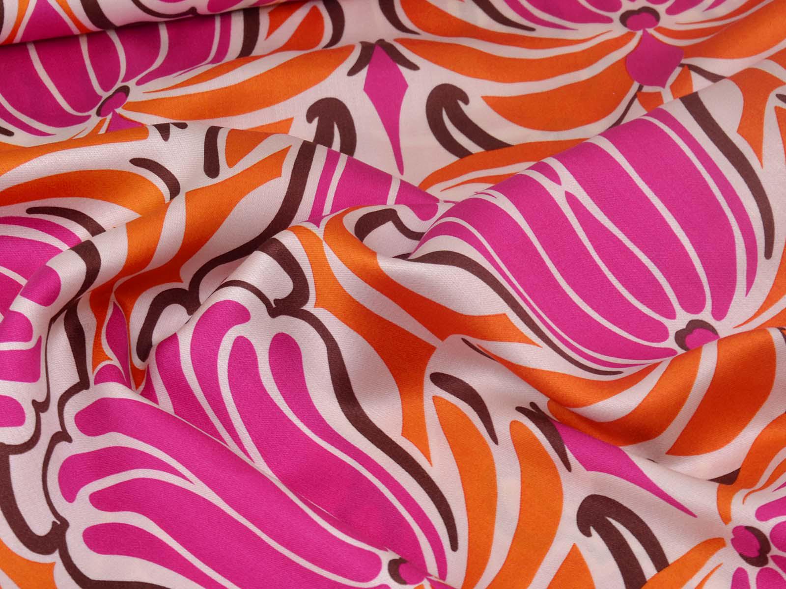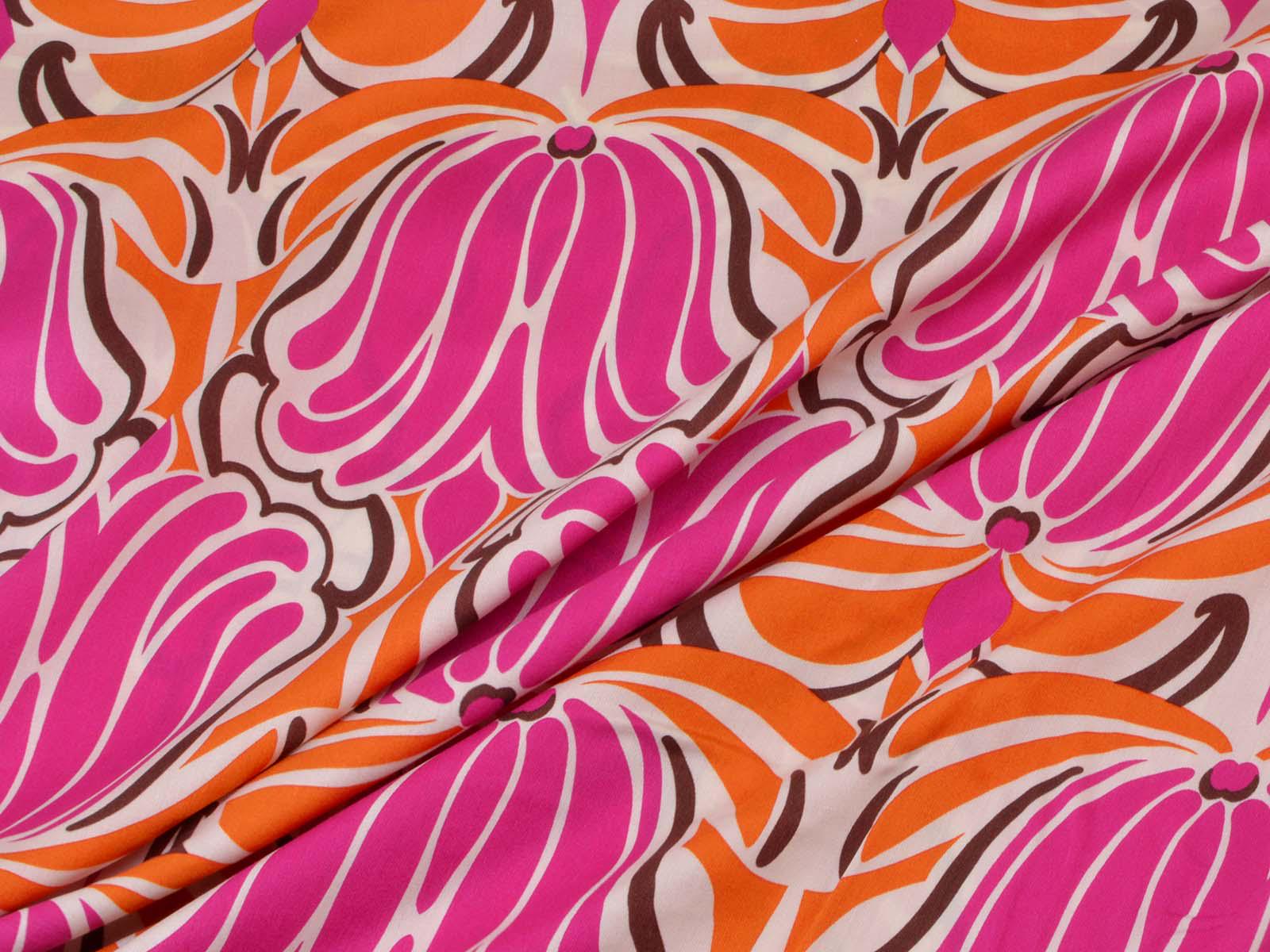 Woven viscose fabric with a large floral pattern. The fabric is made in Italy. The viscose is lightweight, thin, drapes beautifully, and has a subtle sheen. It is perfect for sewing dresses, blouses, summer trousers, skirts, and much more.