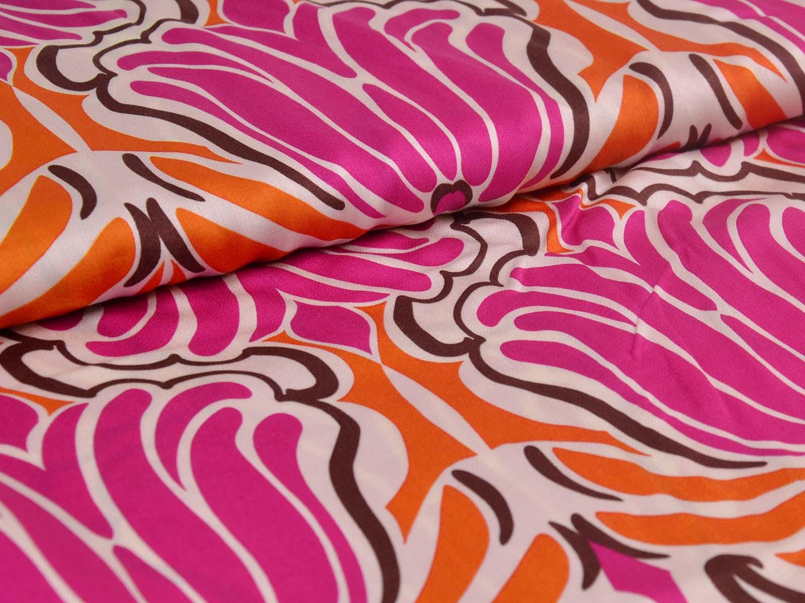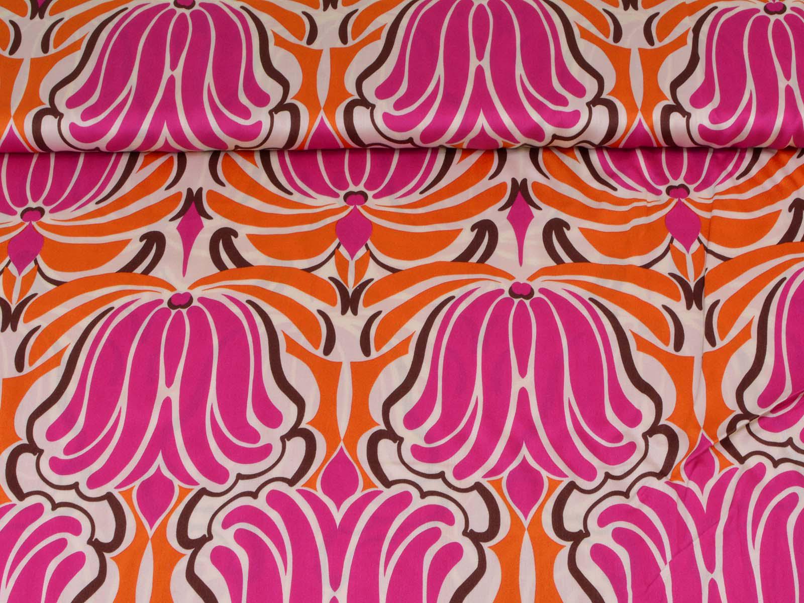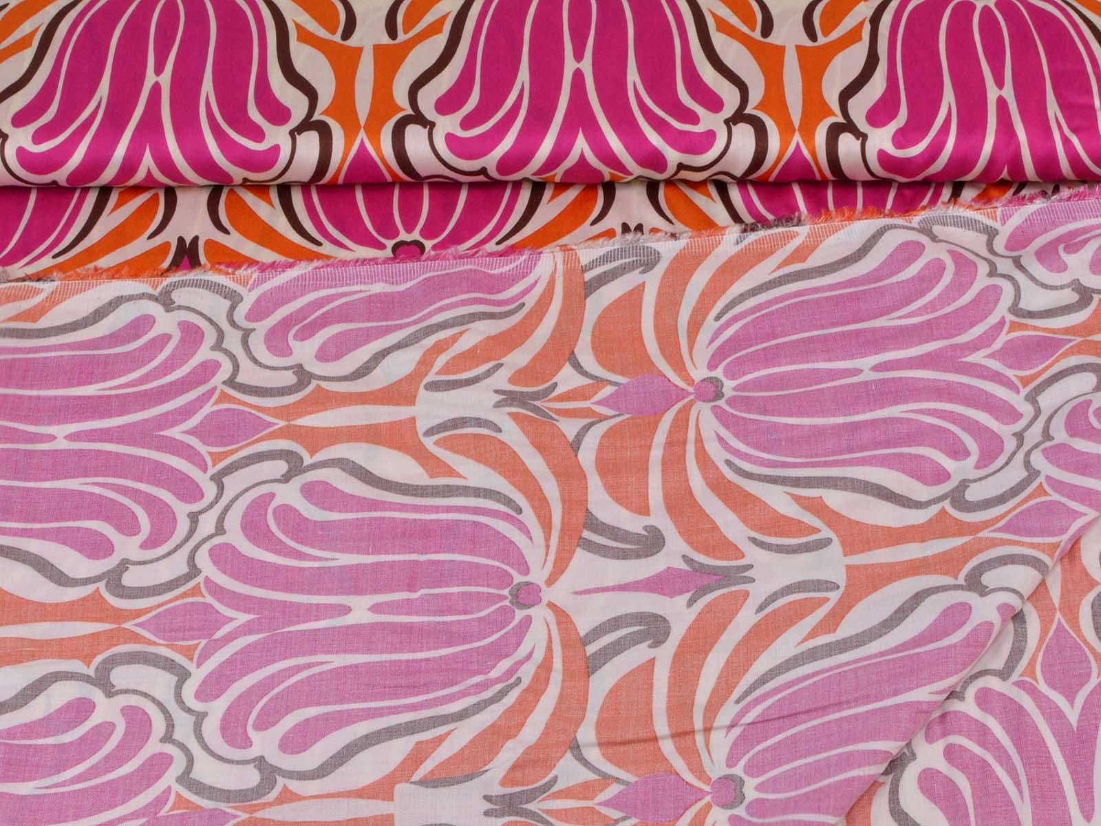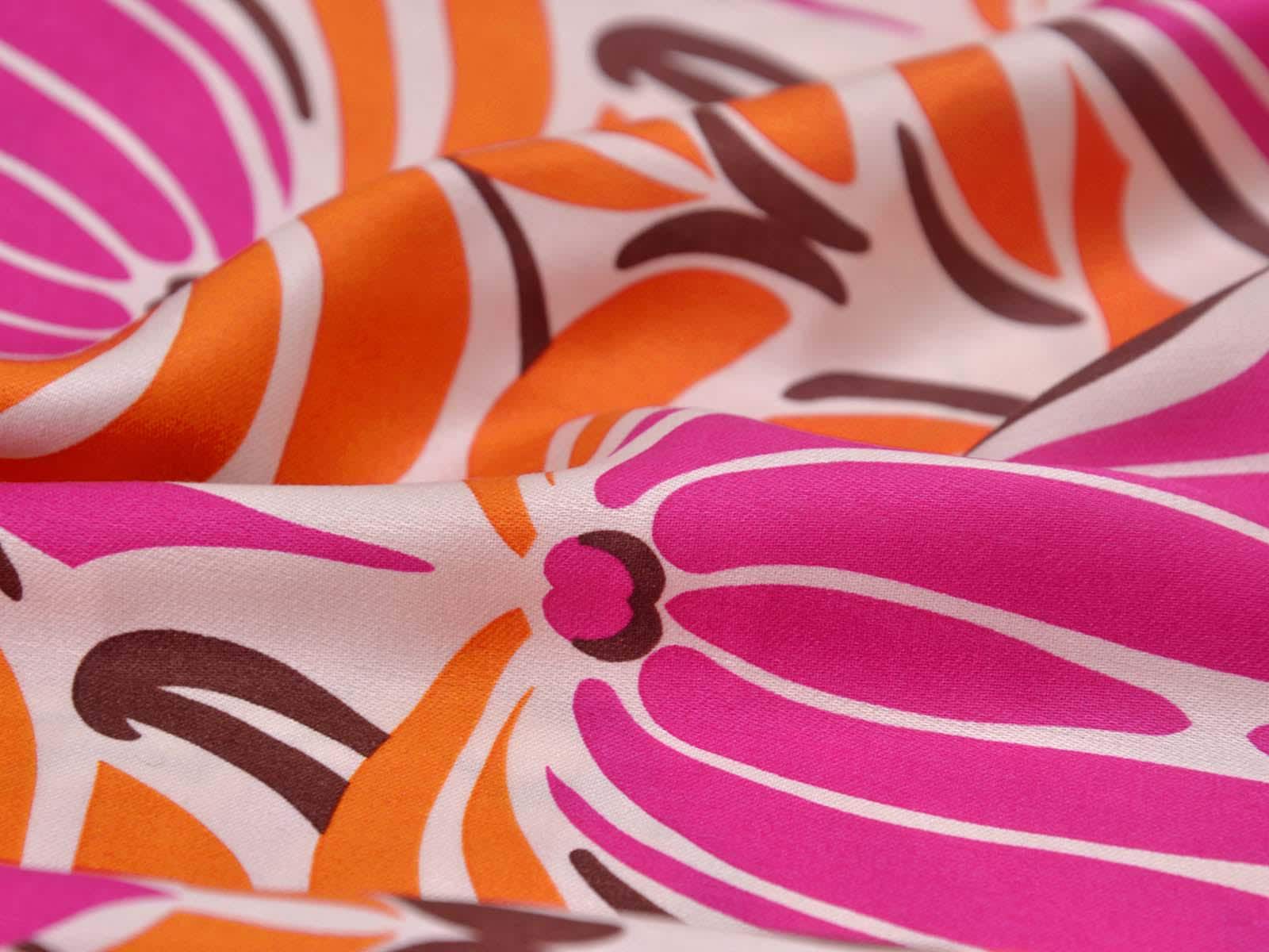 Woven viscose fabric with a large floral pattern. The fabric is made in Italy. The viscose is lightweight, thin, drapes beautifully, and has a subtle sheen. It is perfect for sewing dresses, blouses, summer trousers, skirts, and much more.