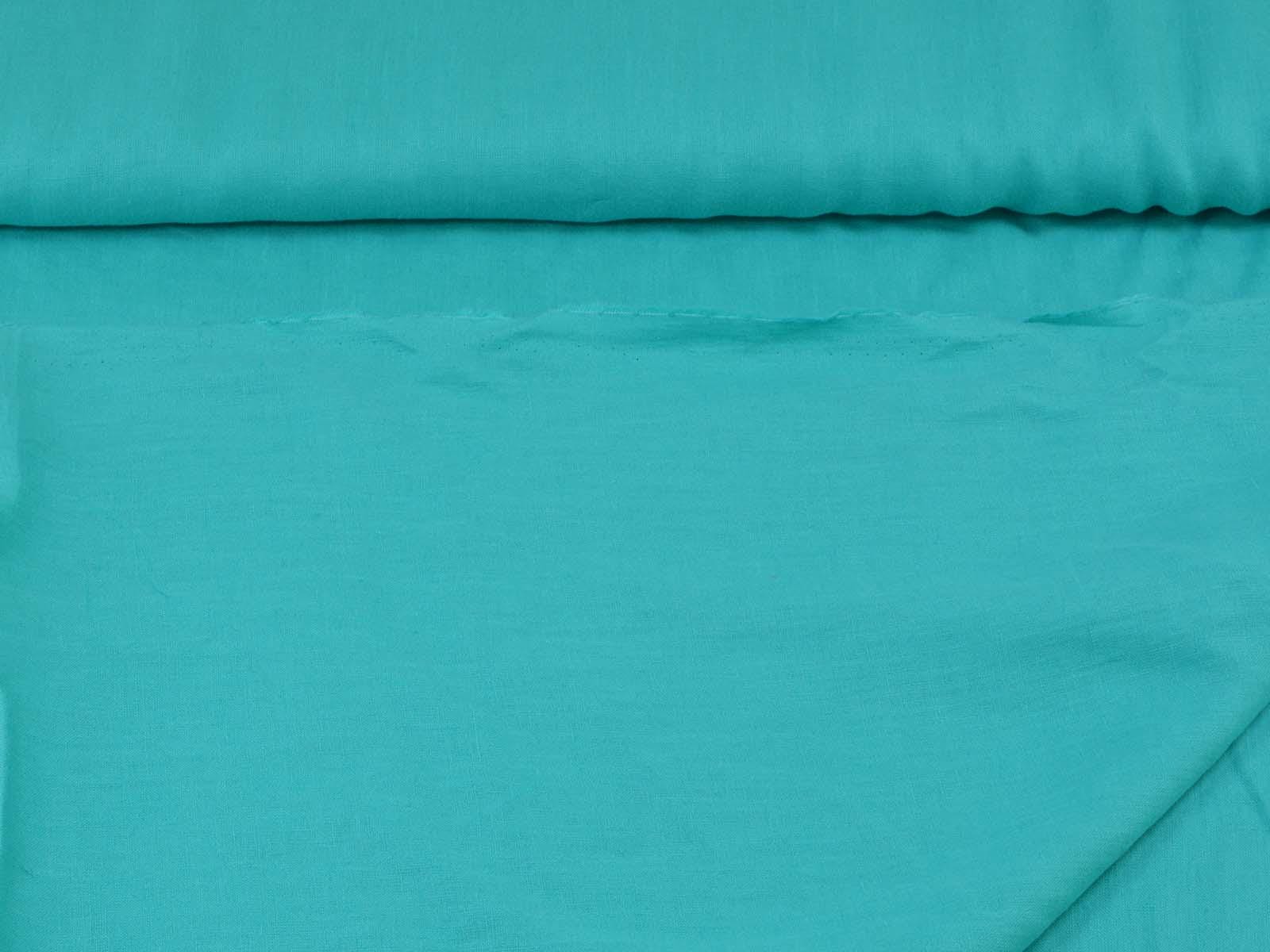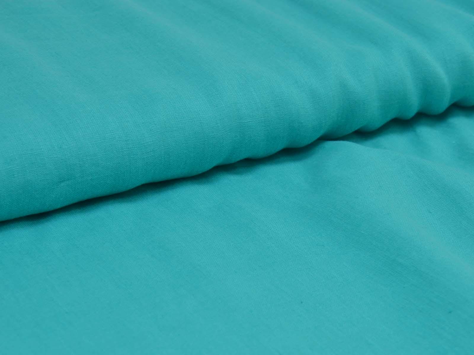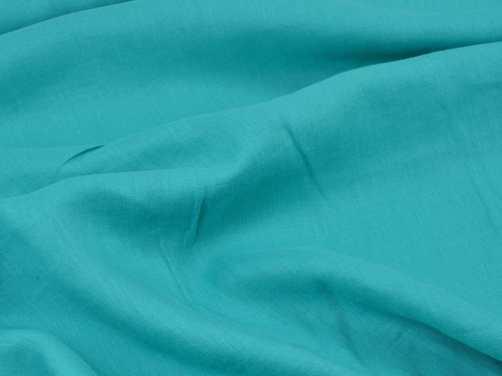 Woven fabric made of pure linen in turquoise. The fabric is thin, matte, and medium-weight. It is suitable for sewing dresses, skirts, blouses, light summer jackets, and much more.