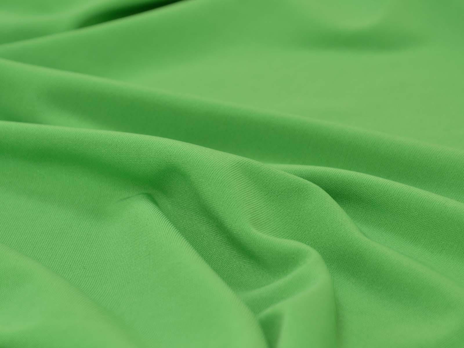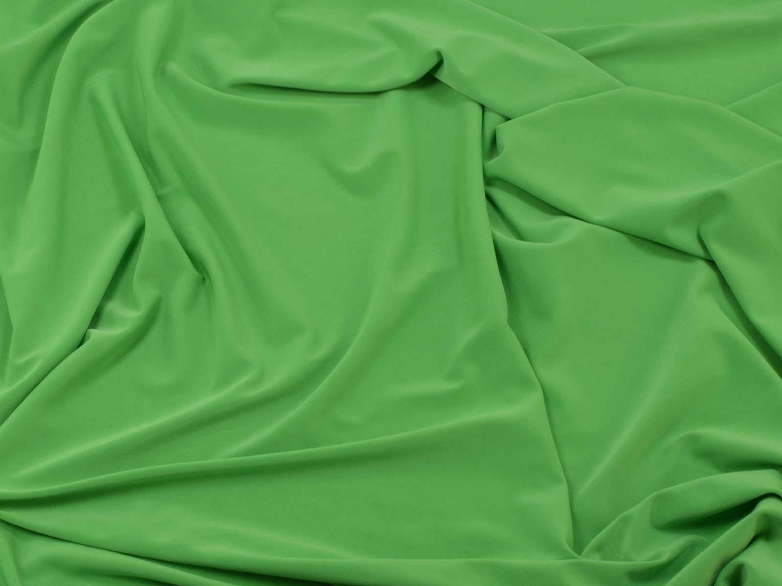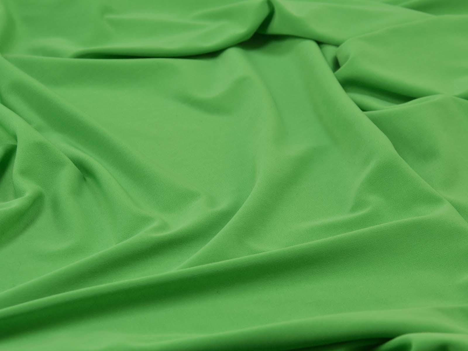 Green viscose jersey with elastane. The fabric is thin, smooth, shiny, very stretchy, and has a beautiful drape. Sew sportswear, swimwear, T-shirts, underwear, and much more.