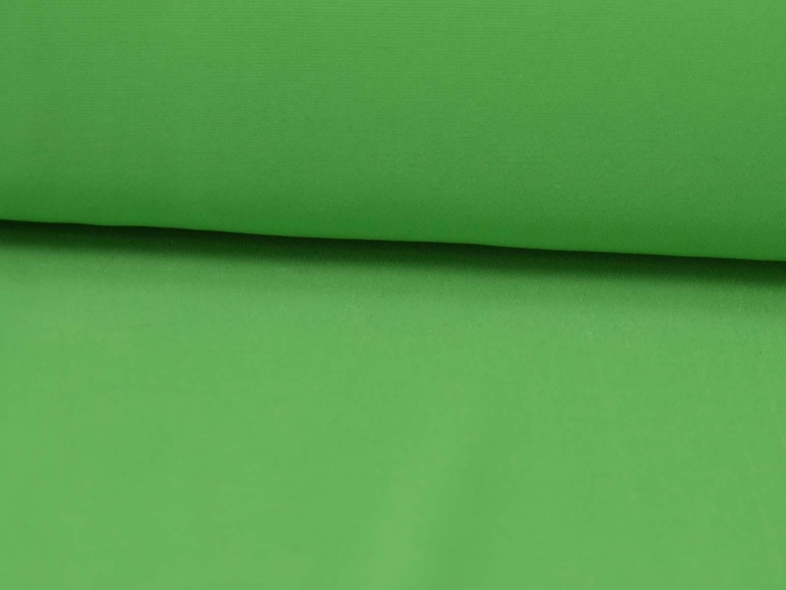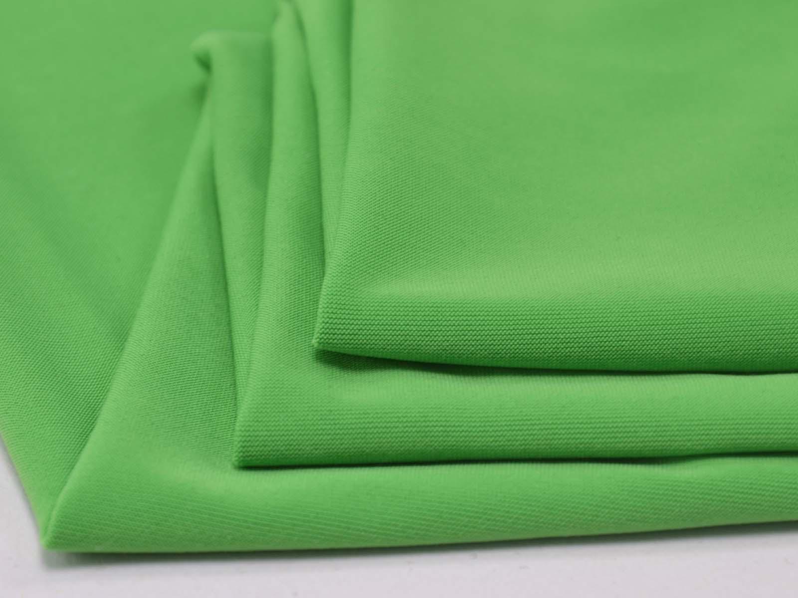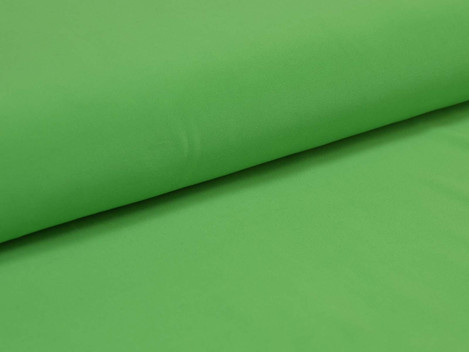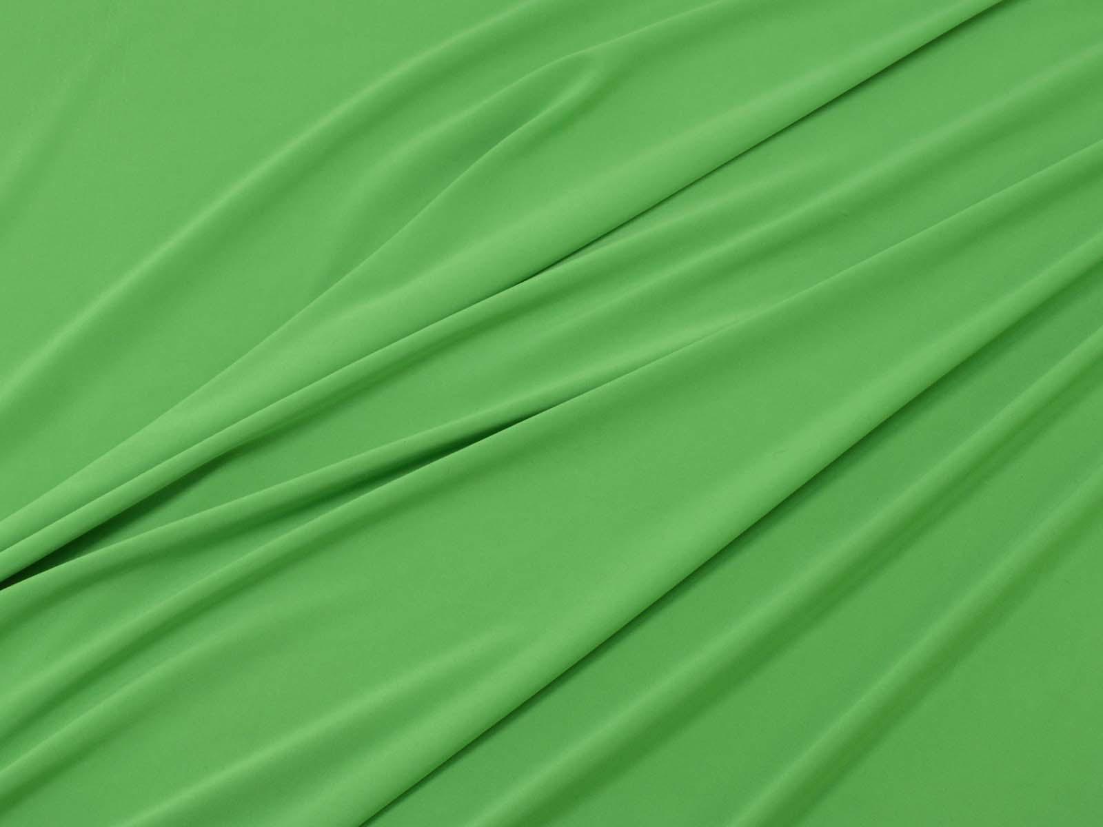 Green viscose jersey with elastane. The fabric is thin, smooth, shiny, very stretchy, and has a beautiful drape. Sew sportswear, swimwear, T-shirts, underwear, and much more.