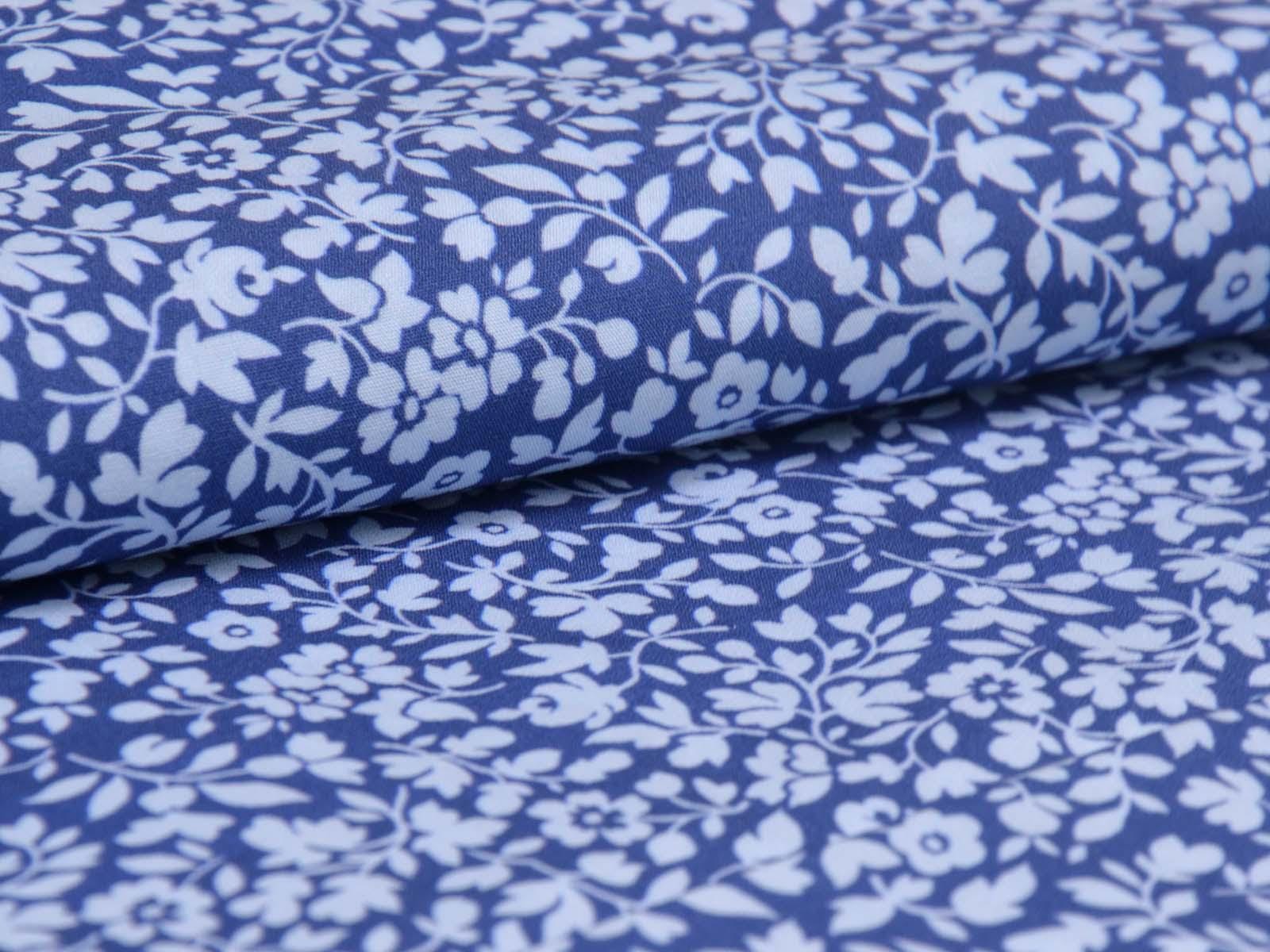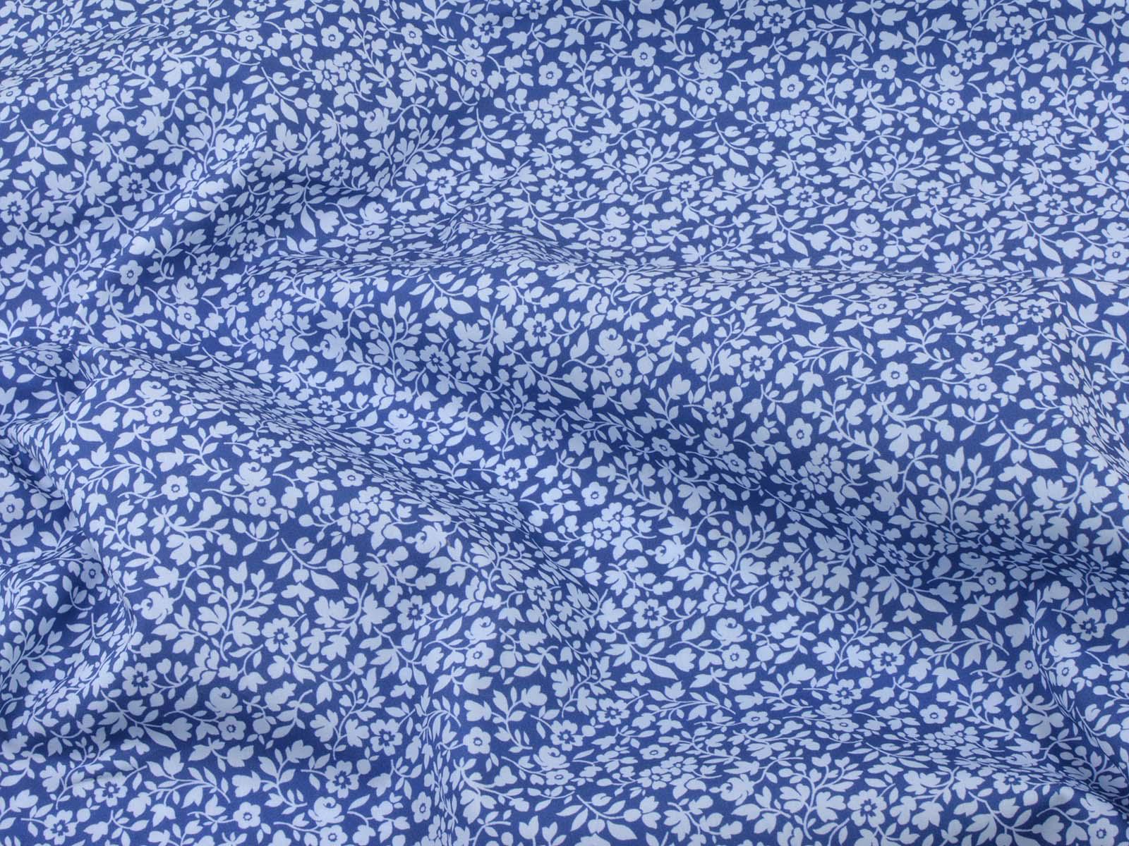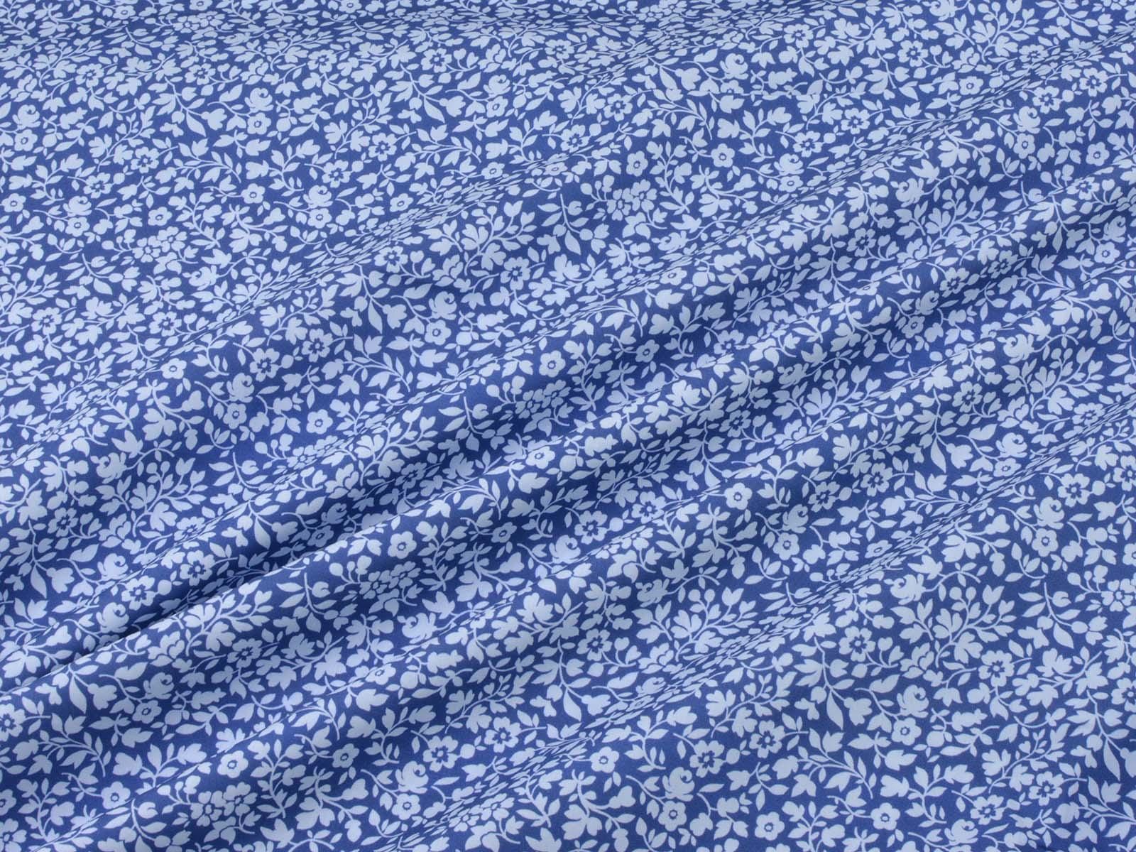 Cotton fabric from the Emilie series by Hilco. This smooth, thin poplin is blue with light blue flowers. All fabrics in the Emilie 2025 collection can be beautifully combined. Sew shirts, dresses, cushions, bags, storage containers, or use the fabric for patchwork.