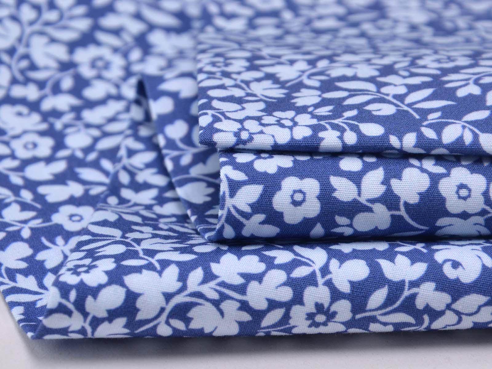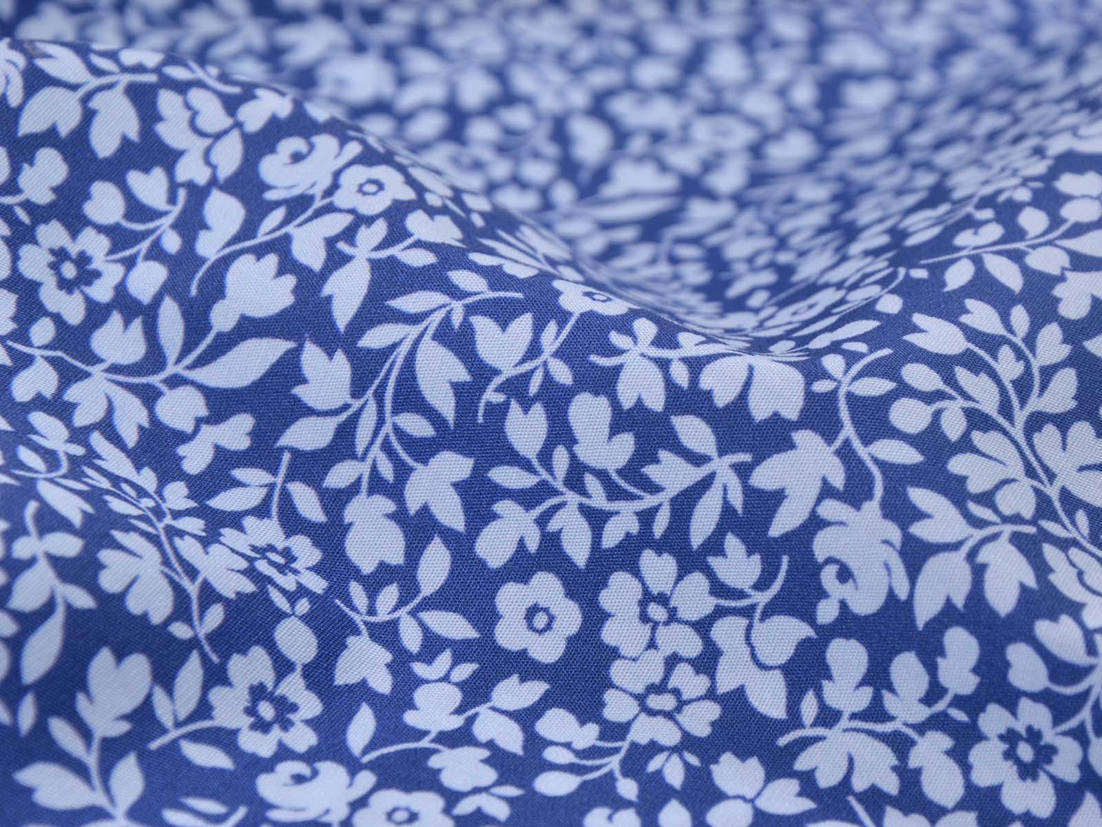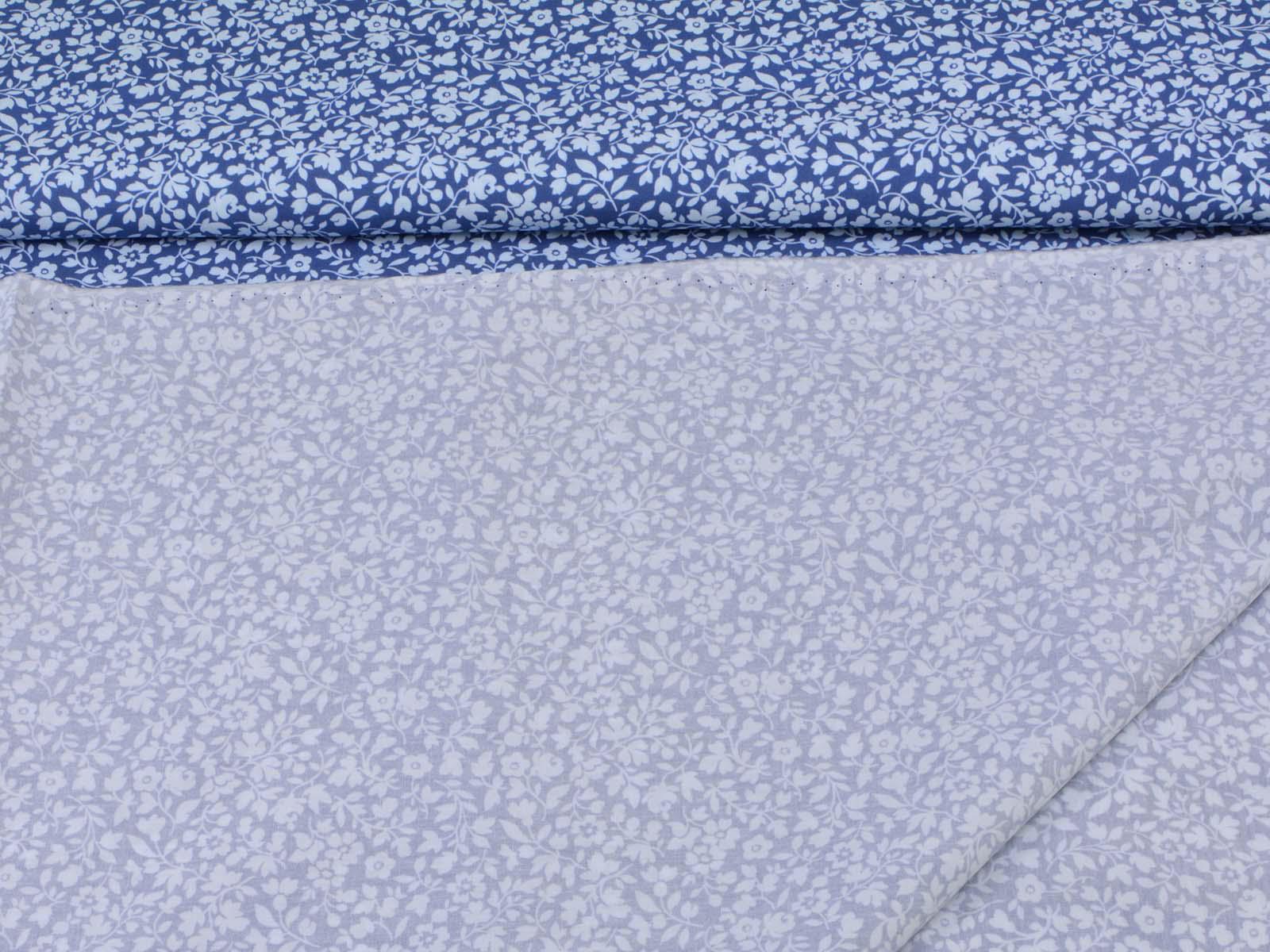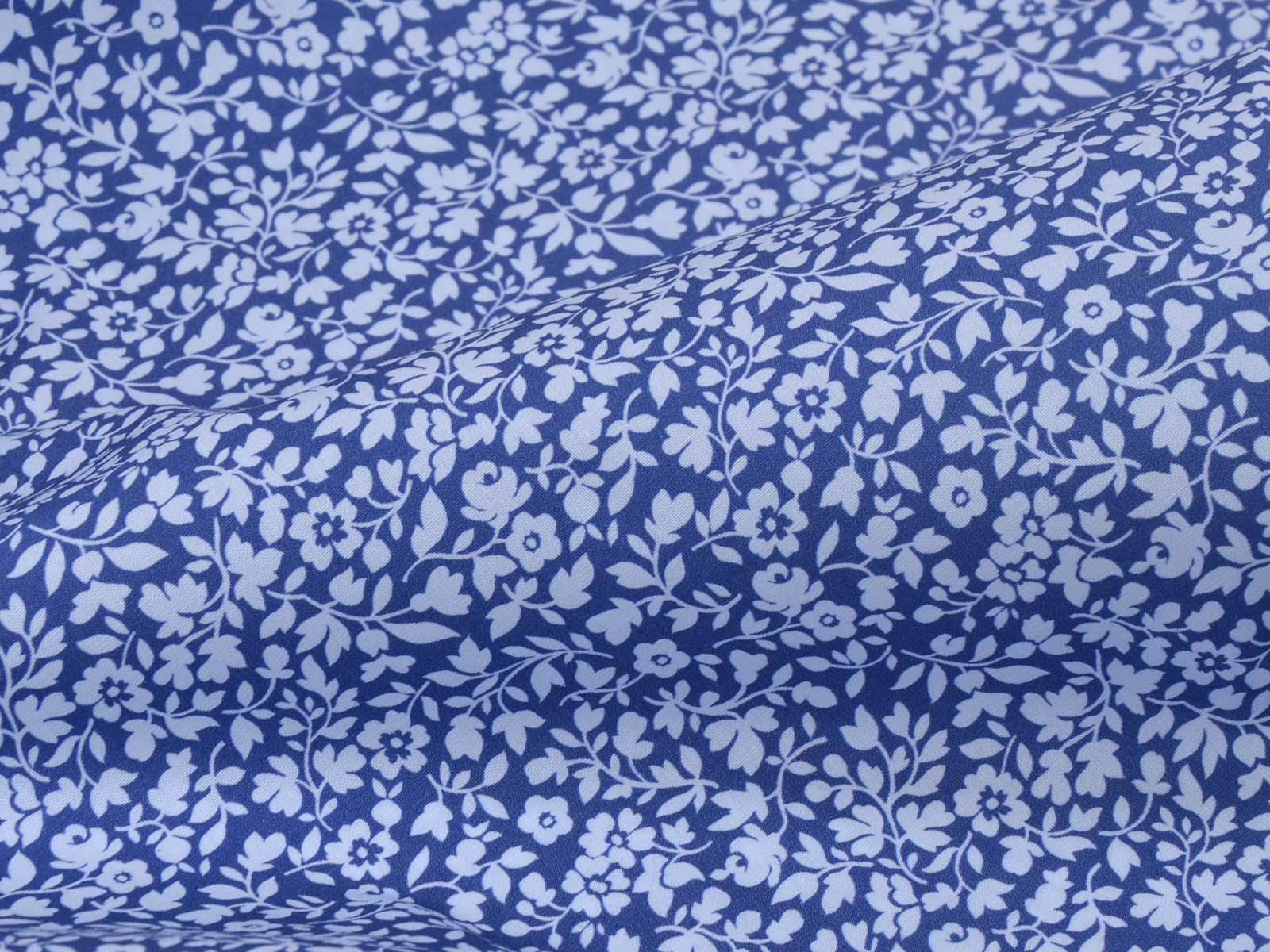 Cotton fabric from the Emilie series by Hilco. This smooth, thin poplin is blue with light blue flowers. All fabrics in the Emilie 2025 collection can be beautifully combined. Sew shirts, dresses, cushions, bags, storage containers, or use the fabric for patchwork.