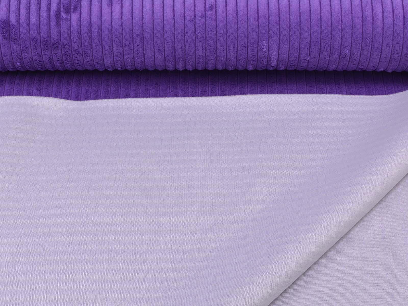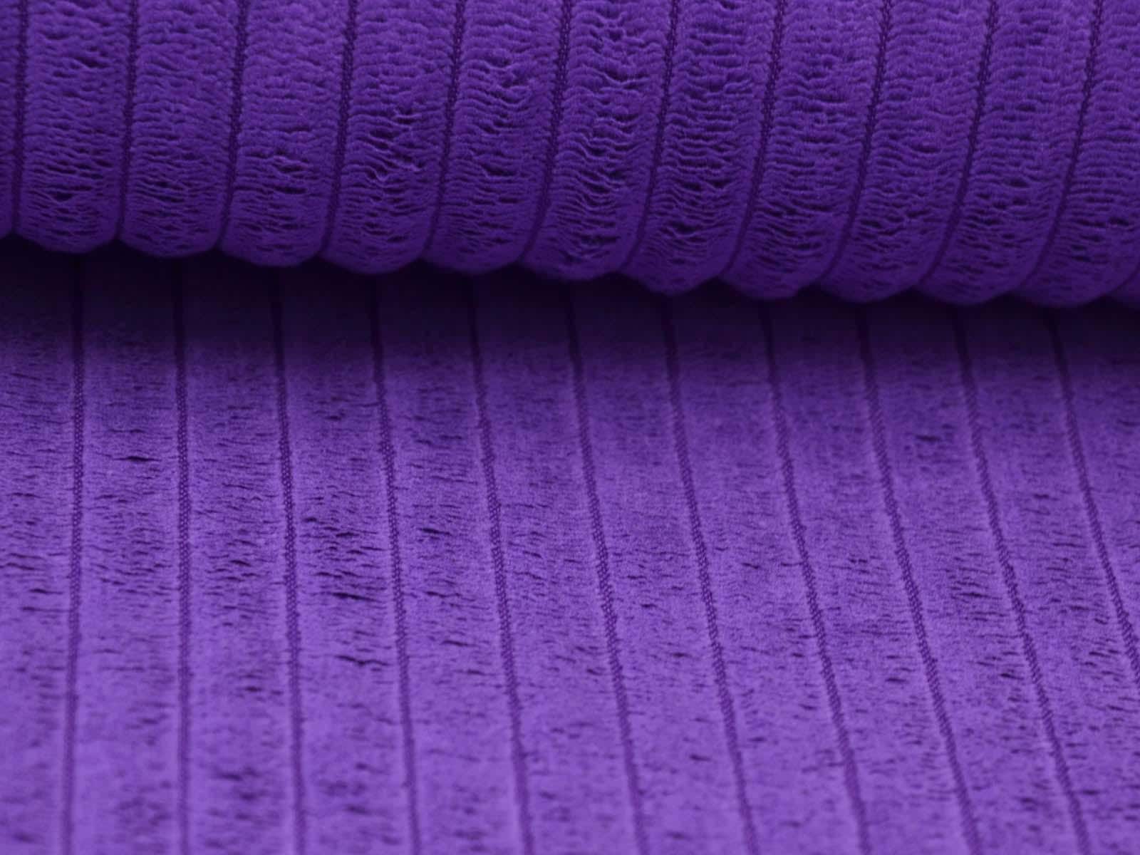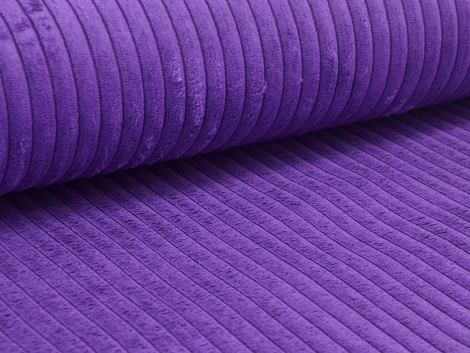 Wide corduroy fabric in purple. Each rib is approximately 1 cm wide. The cord has a velvety, soft feel. You can use it for upholstering armchairs, chairs, and sofas. Sew stylish fanny packs, tote bags, cushions, makeup bags, and much more from this wonderful fabric.
