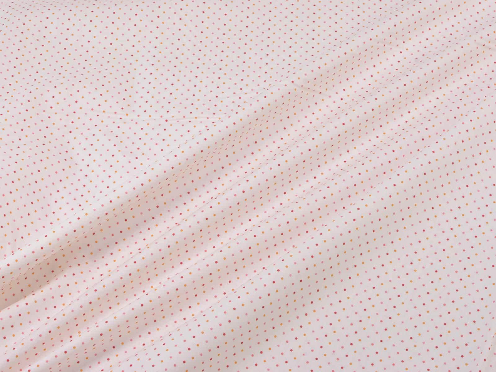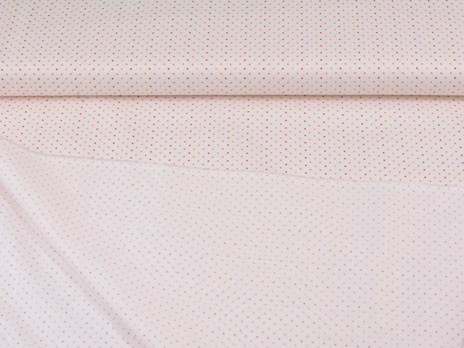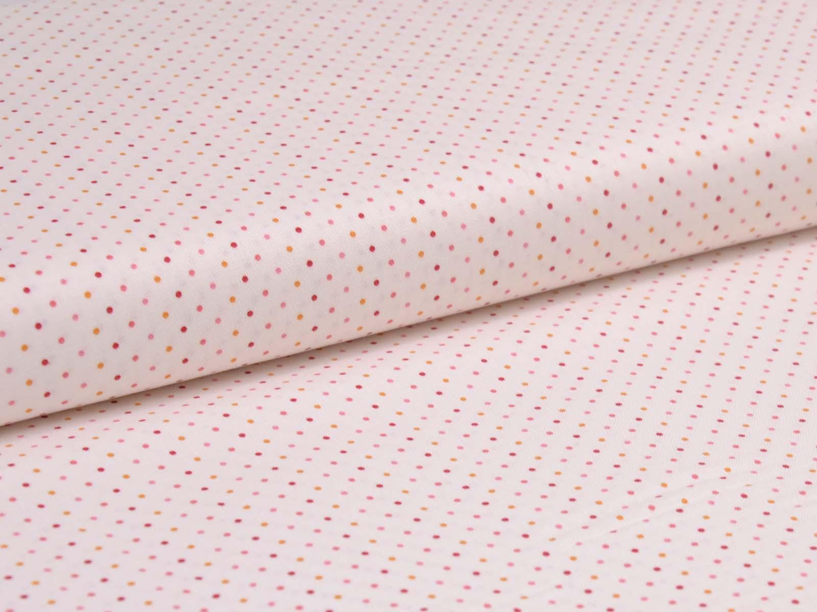 High-quality patchwork fabric made of cotton. The background is cream with tiny dots in red, orange, and pink. You can use the fabric for patchwork projects, but also for sewing storage containers, placemats, tablecloths, and Christmas decorations.