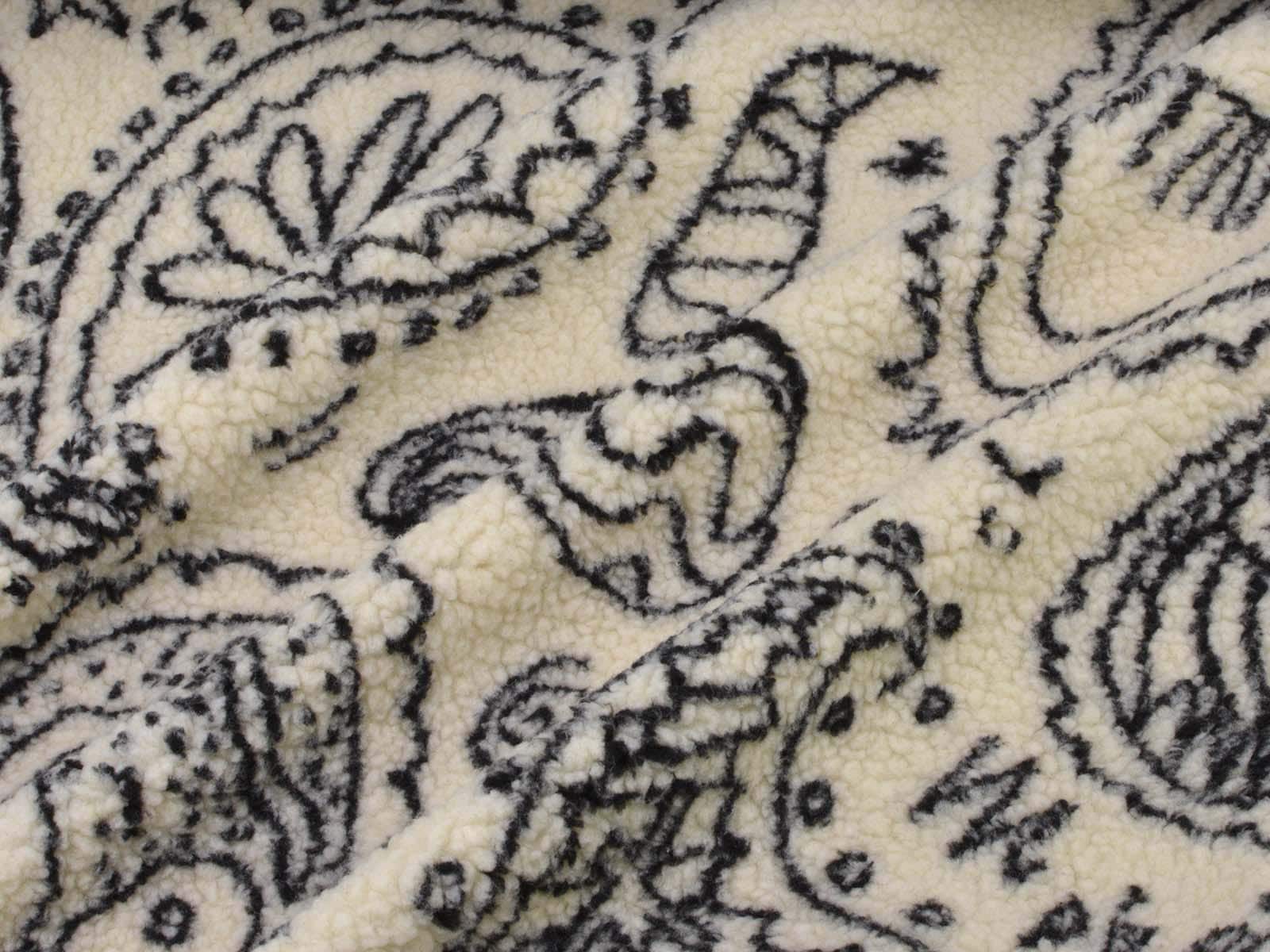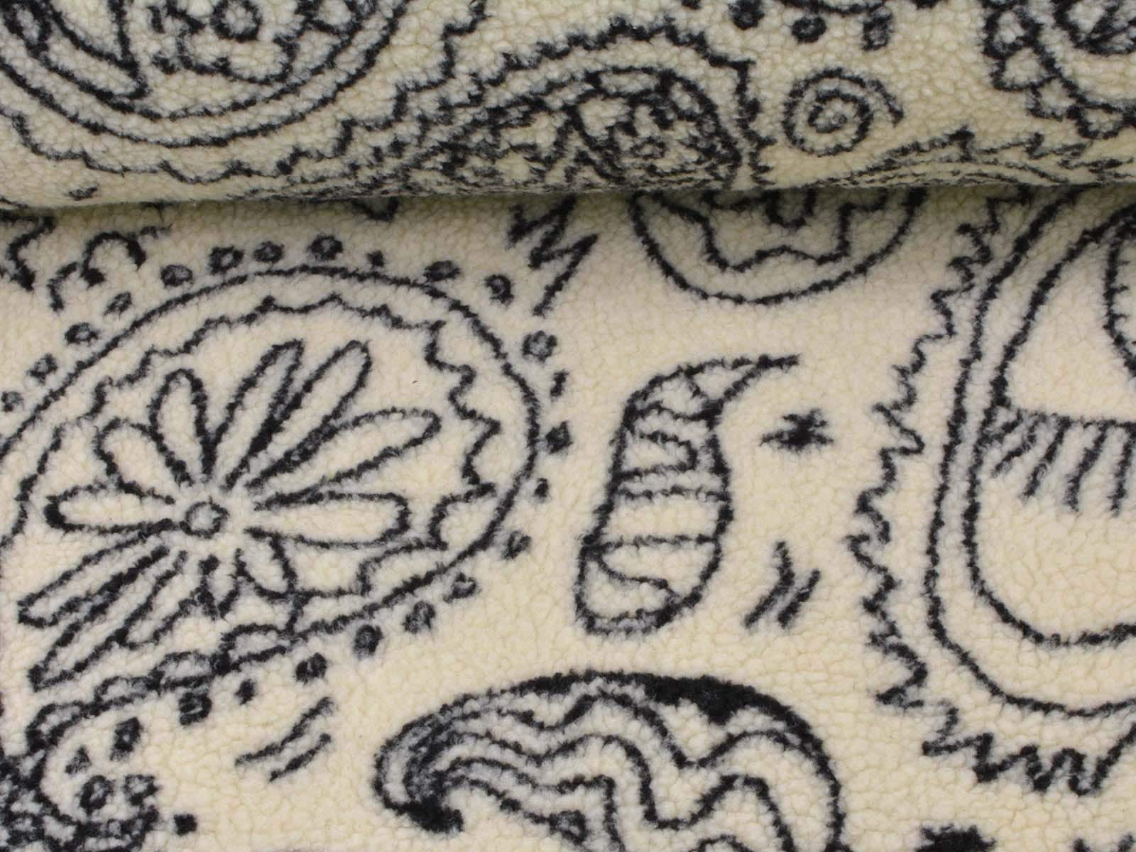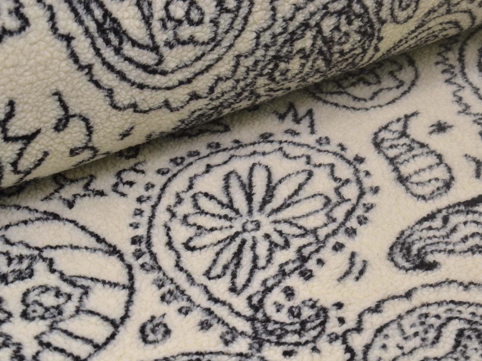 Teddy fabric made of polyester with a jacquard paisley pattern. The fabric is cuddly soft, patterned, and fluffy. Heavy and thick. It's from the current Fibre Mood Special No. 4. Sew great jackets, vests, coats, pillows, and much more with it.