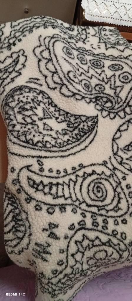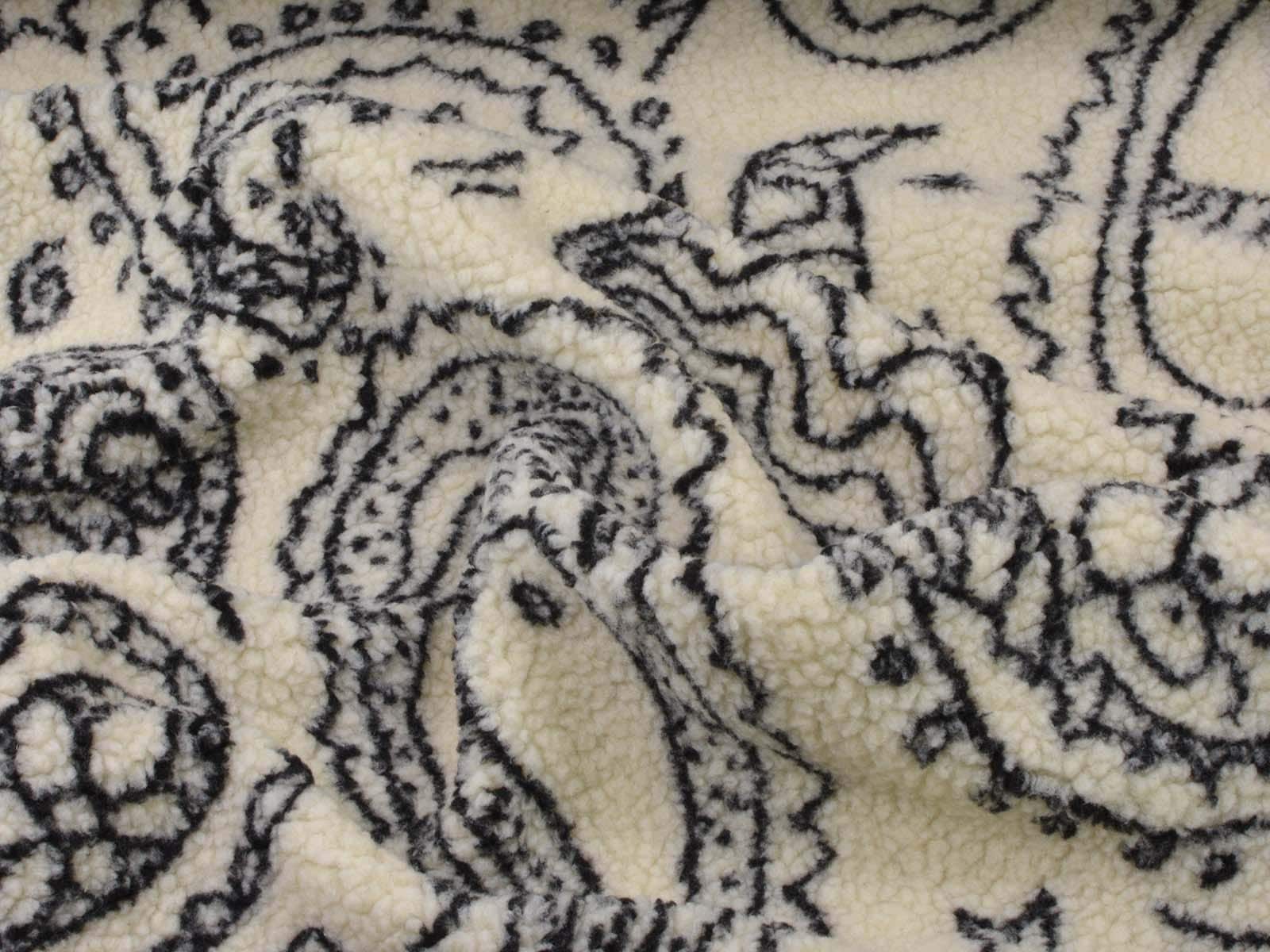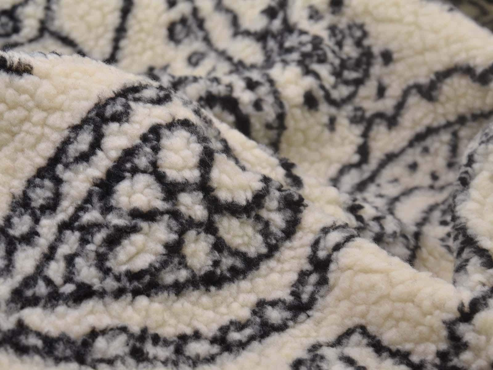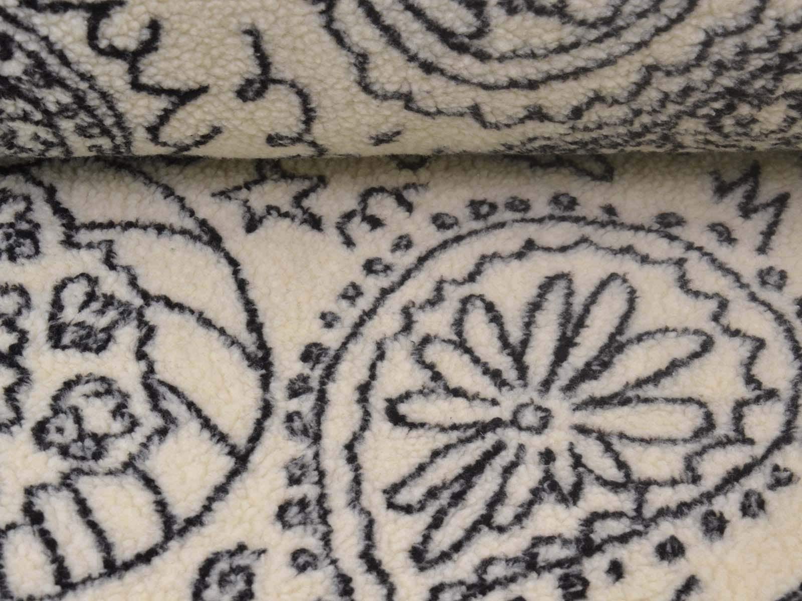 Teddy fabric made of polyester with a jacquard paisley pattern. The fabric is cuddly soft, patterned, and fluffy. Heavy and thick. It's from the current Fibre Mood Special No. 4. Sew great jackets, vests, coats, pillows, and much more with it.